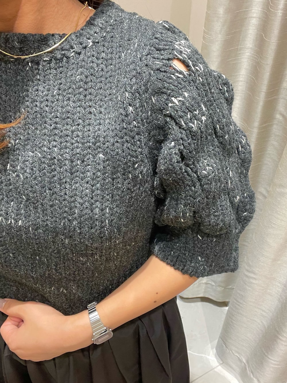 LAATOのハーフスリーブニットはお袖がポコポコしたデザインでちらっと素肌が見えるのがかわいいポイントです!
