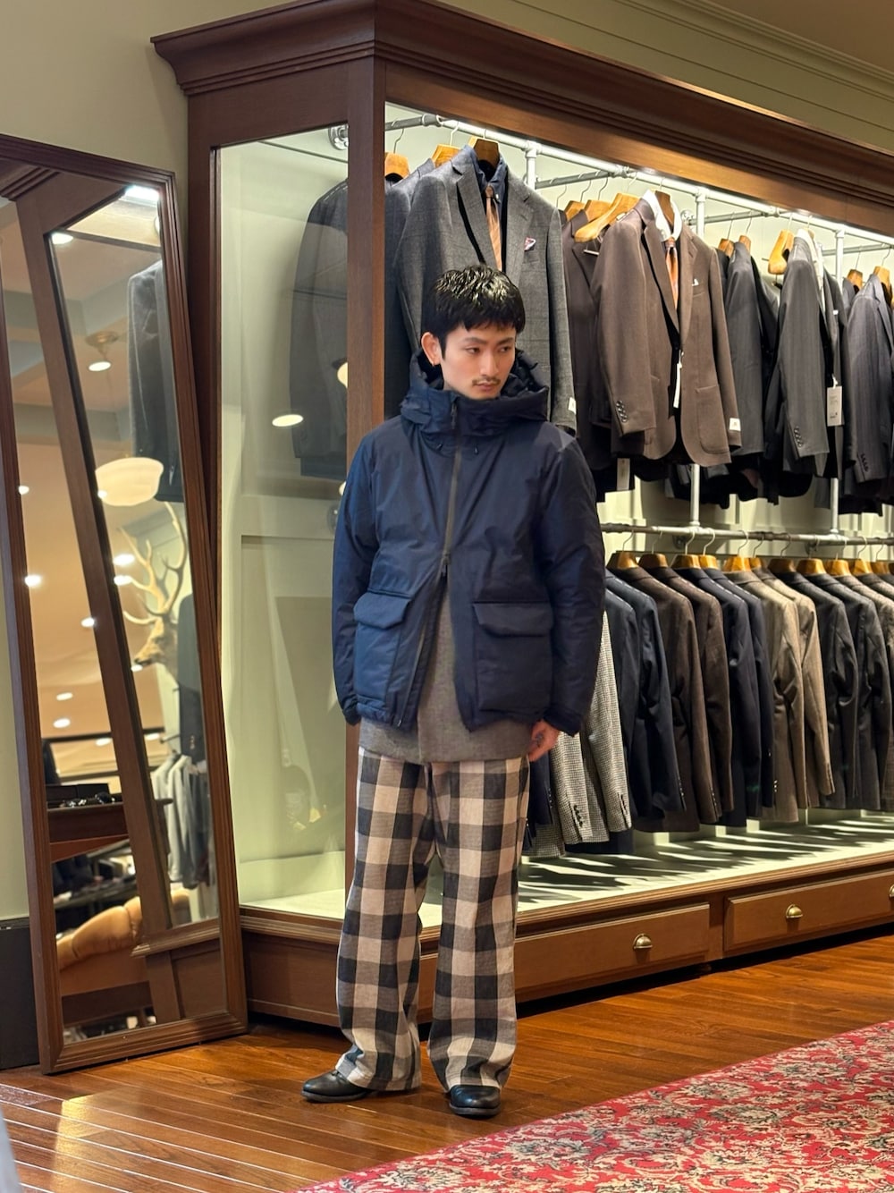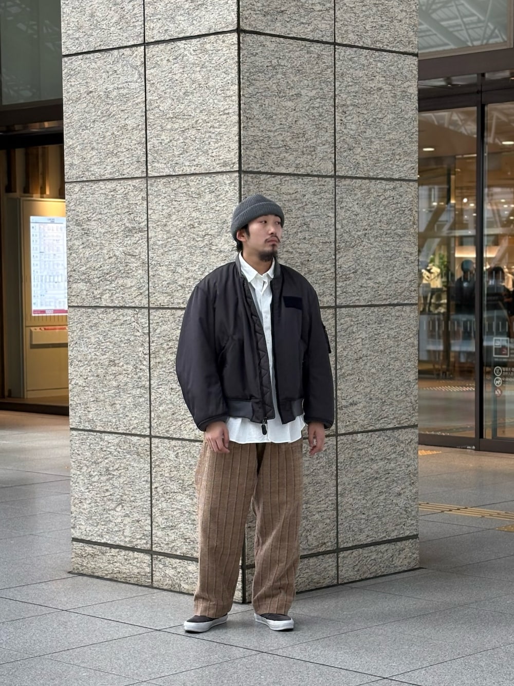デニムやスラックスの合わせも良いですが、今回はスウェットパンツで合わせてみました。