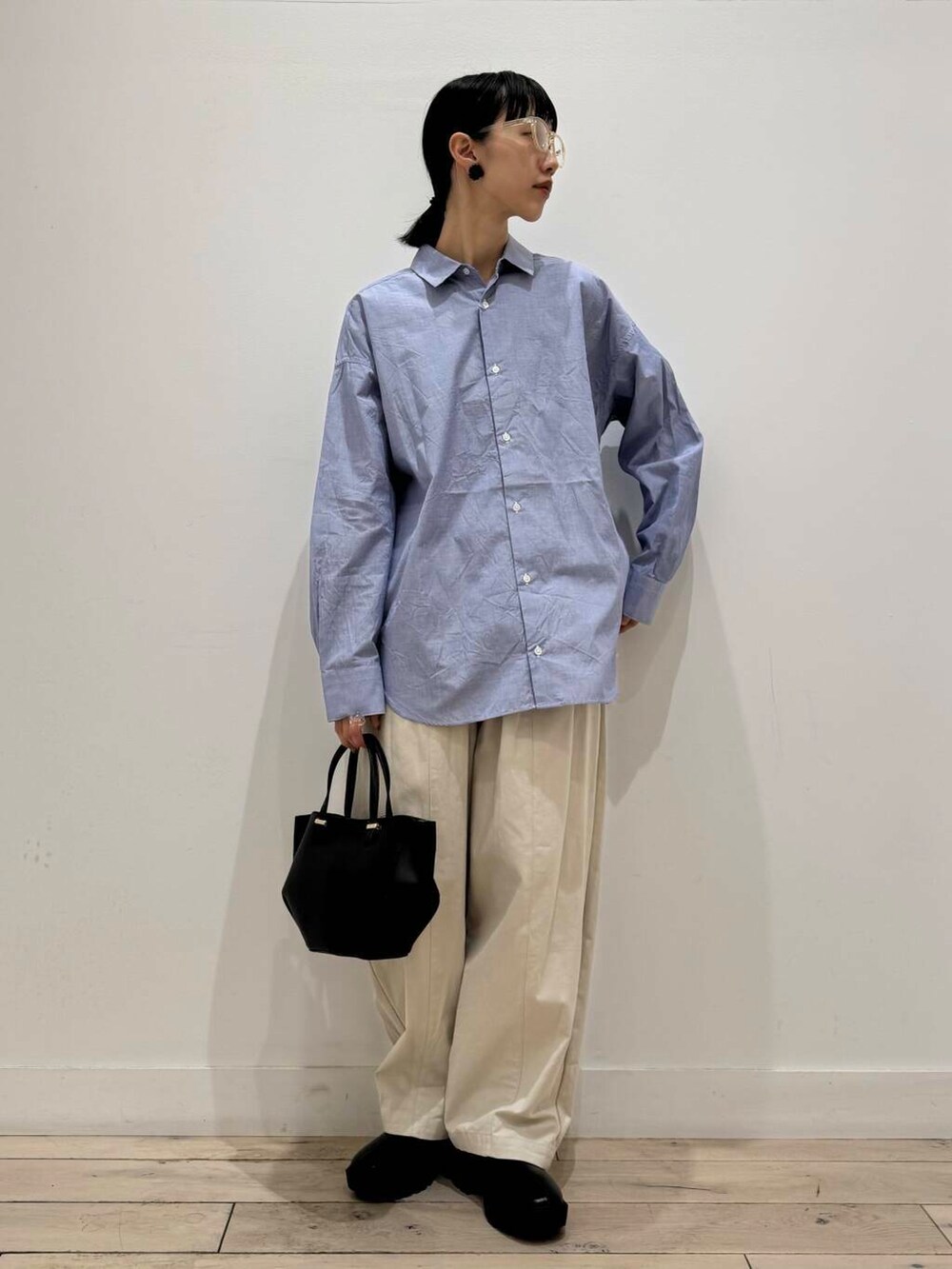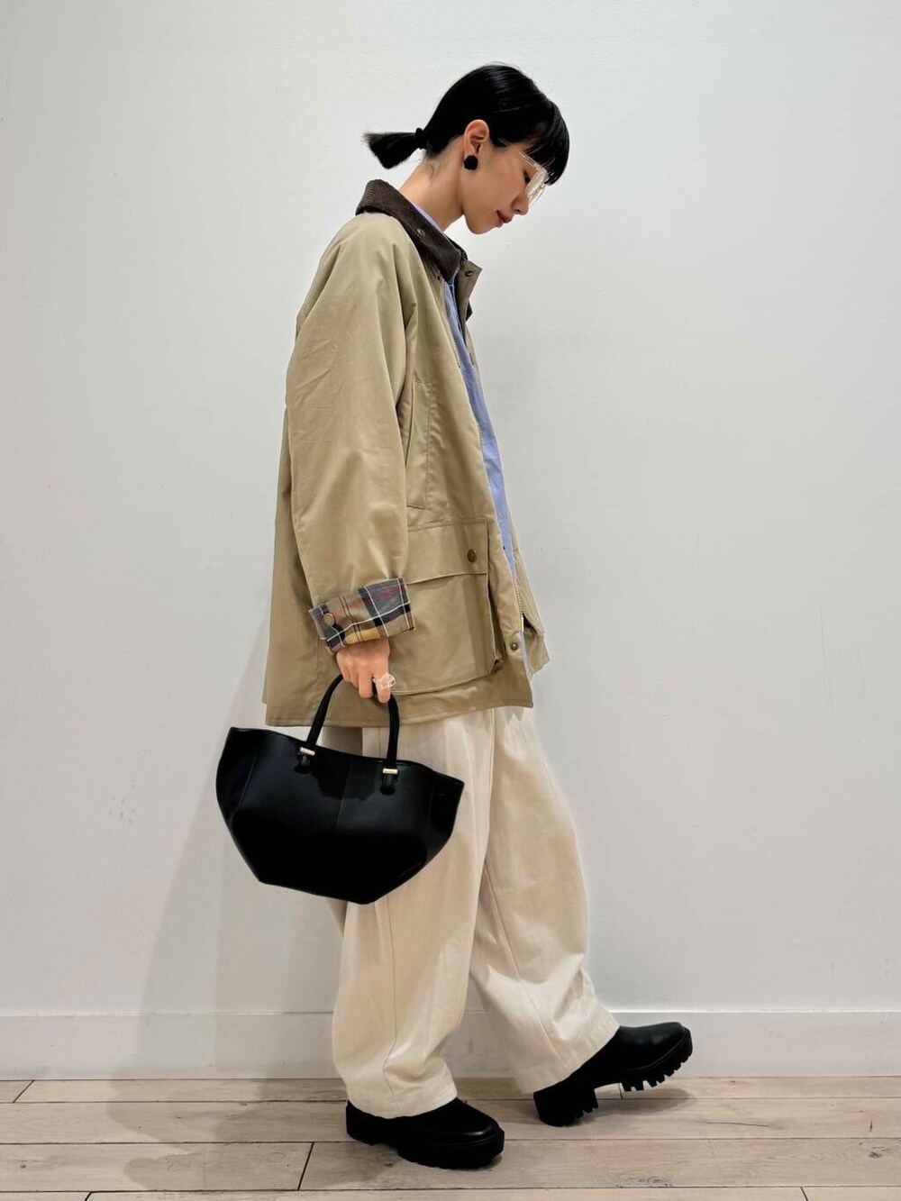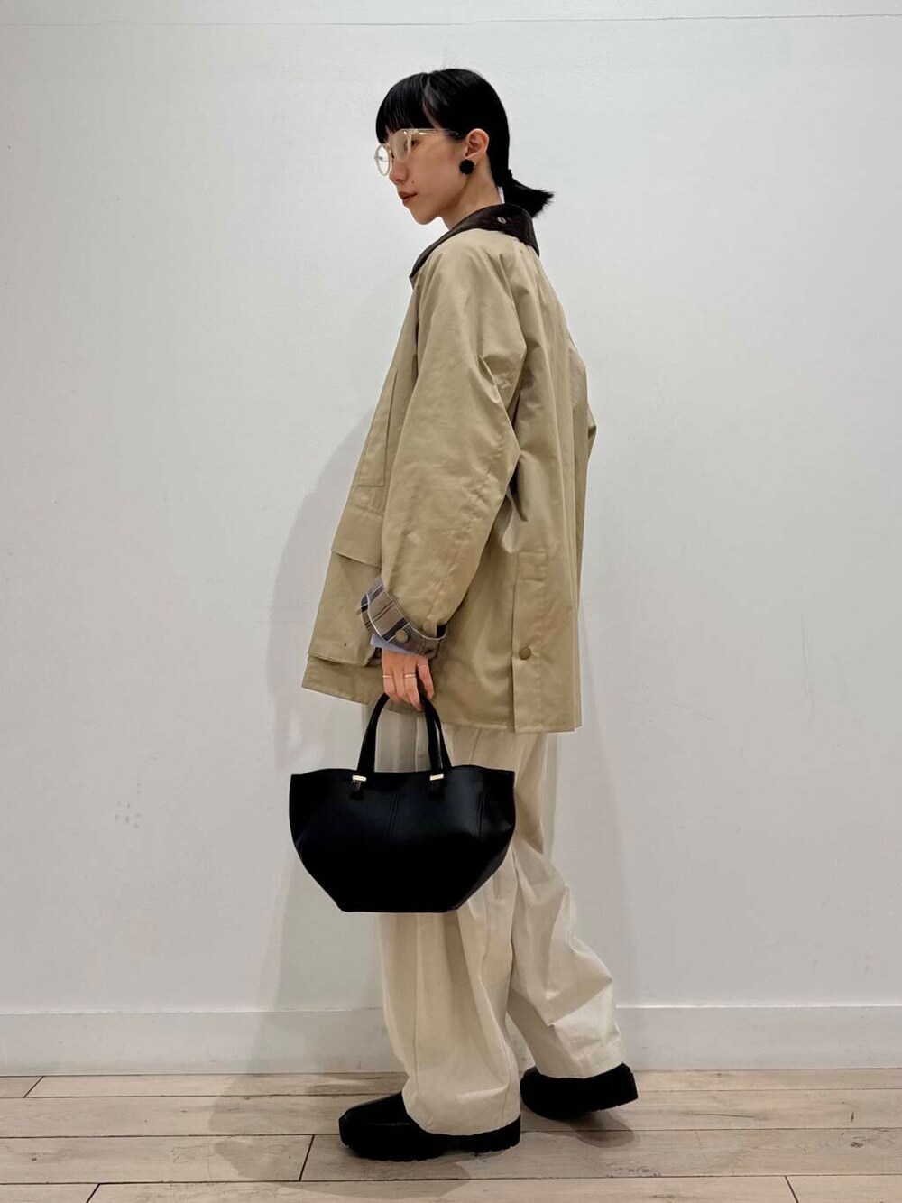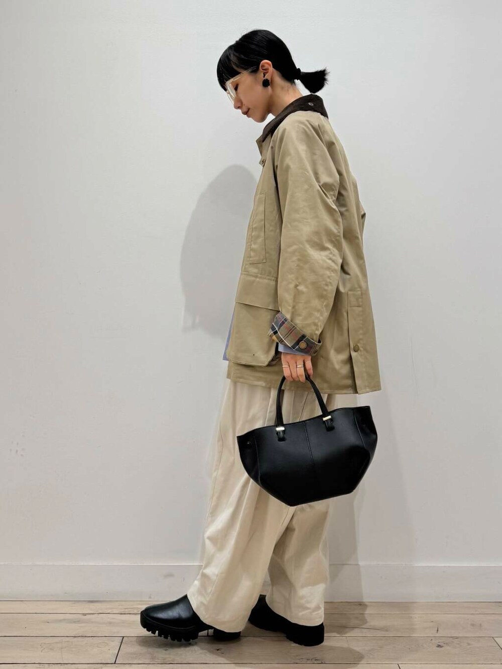 洋服が淡めの色味なので、ブーツとバッグは黒できちっと感を出しました!