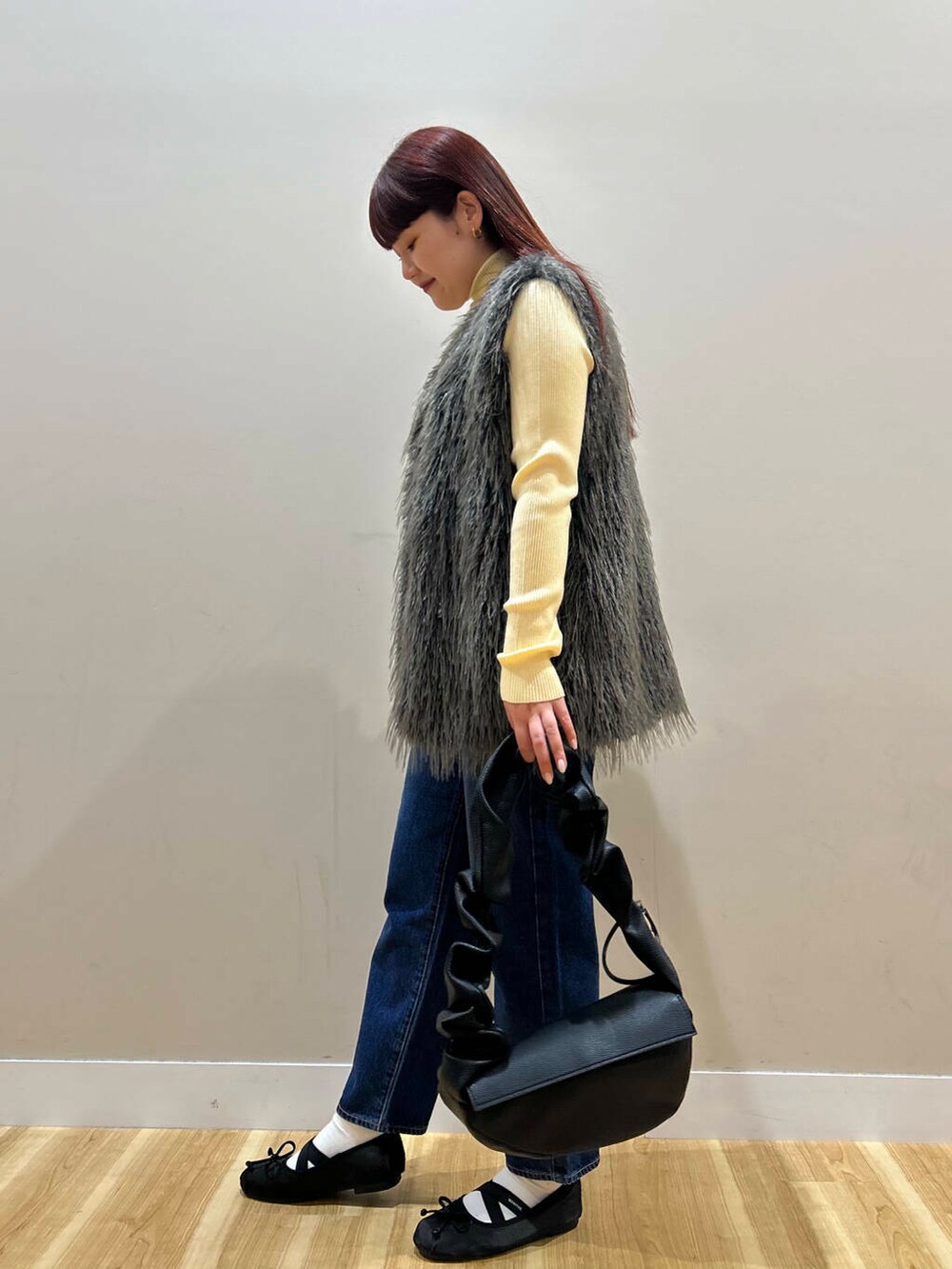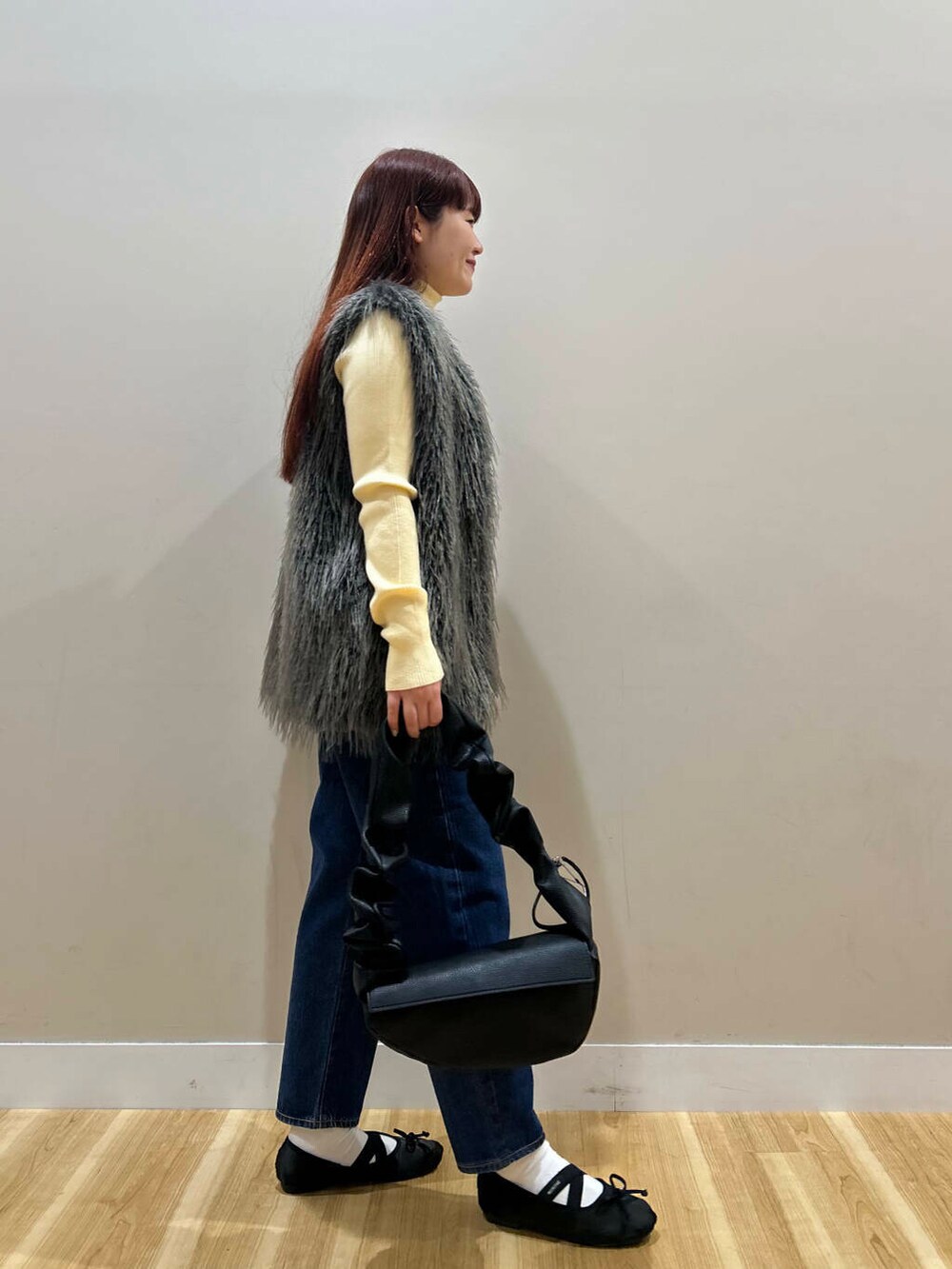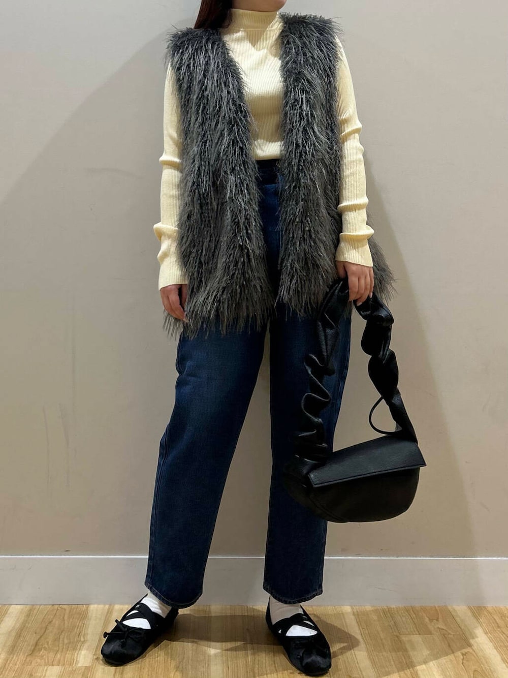 毛足長めのファーベストは綺麗目にもカジュアルにもお使いいただけるアイテムです^^