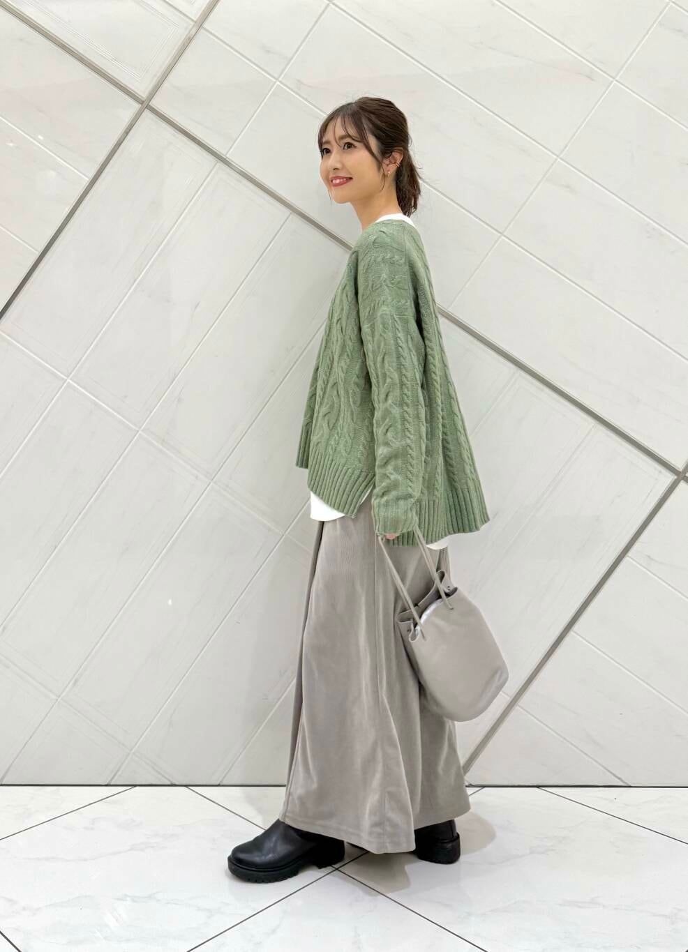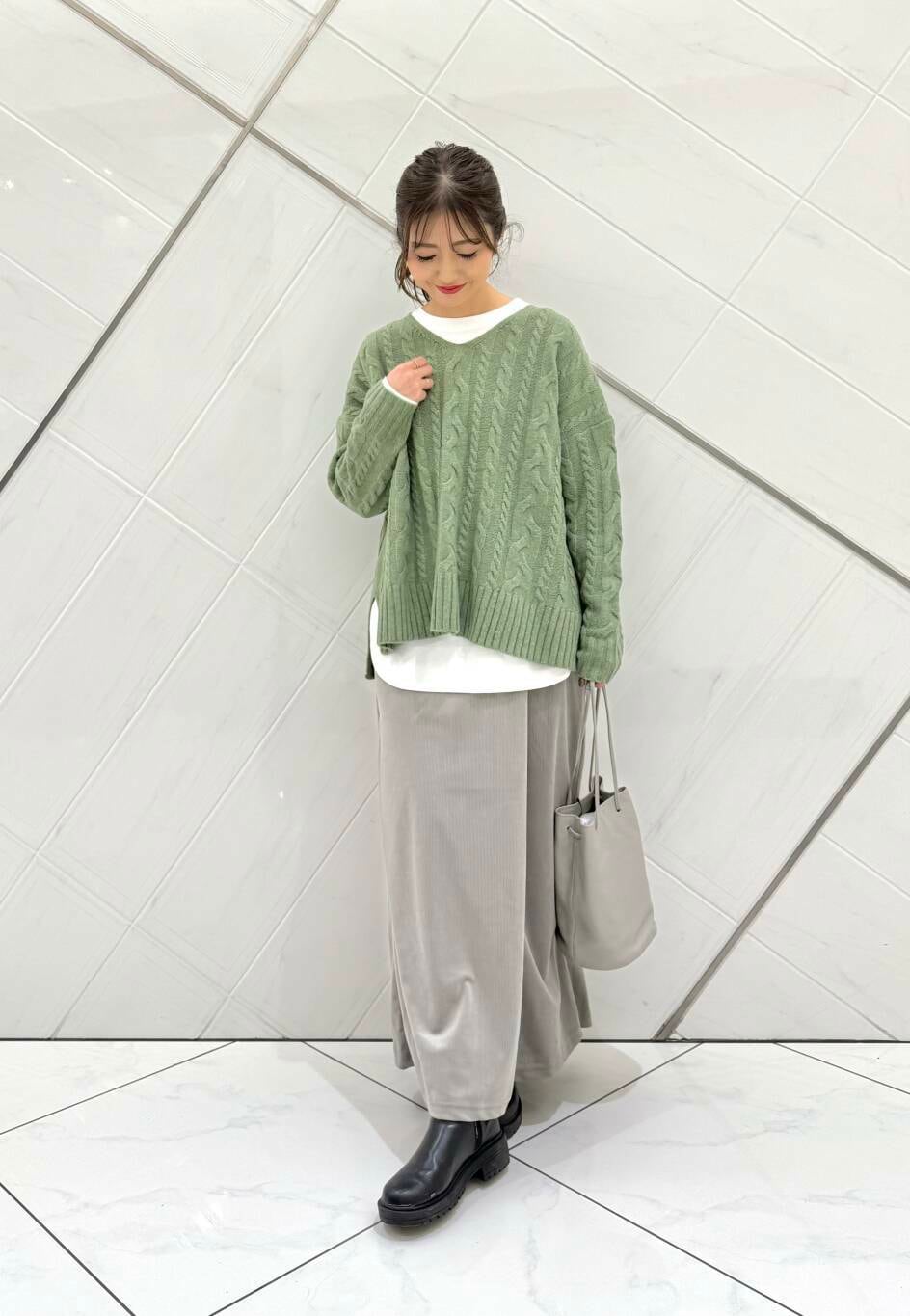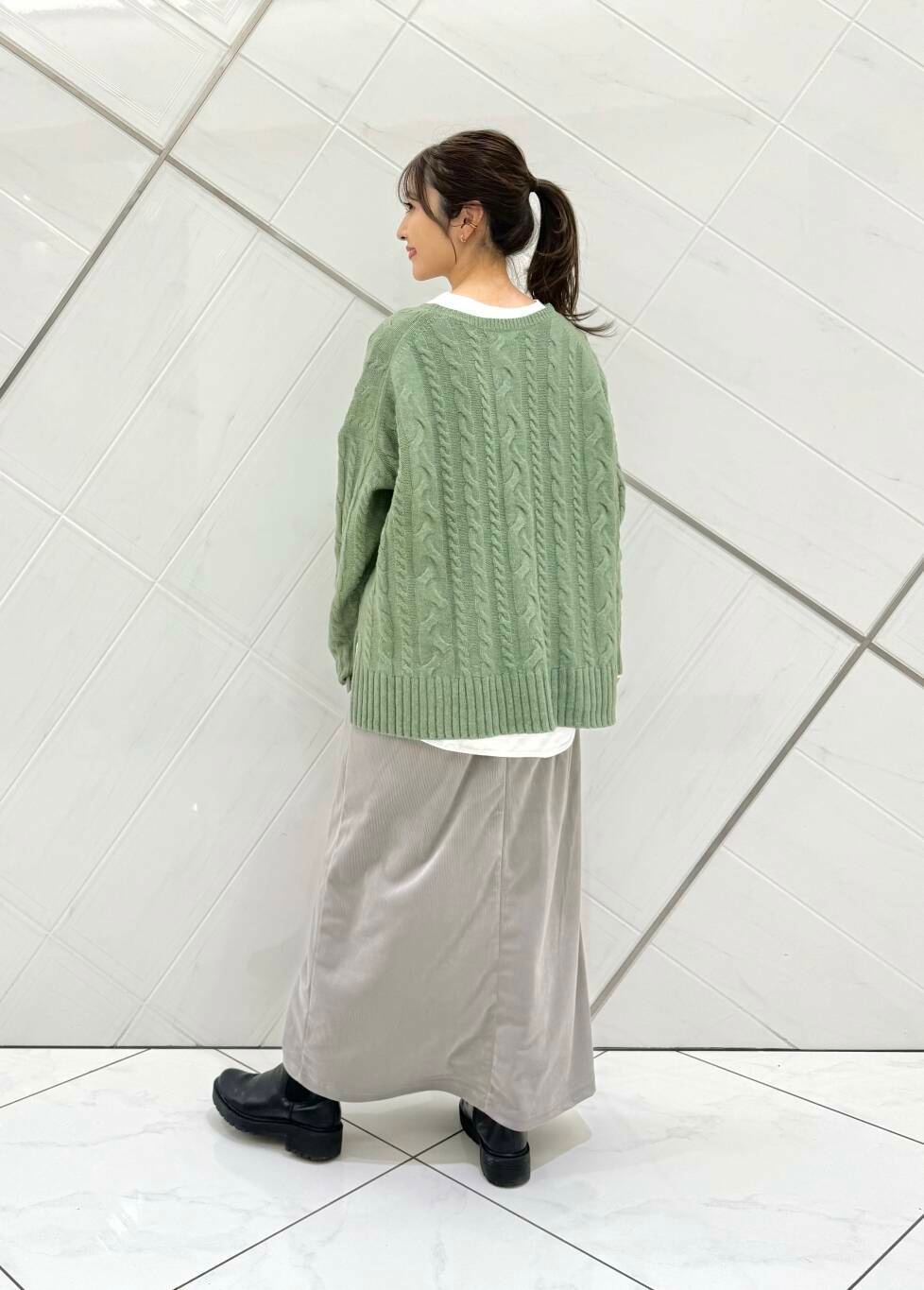 クルーネックのカットソーをレイヤードするだけで雰囲気がグッと変わるので着回しとしておすすめです(^^)