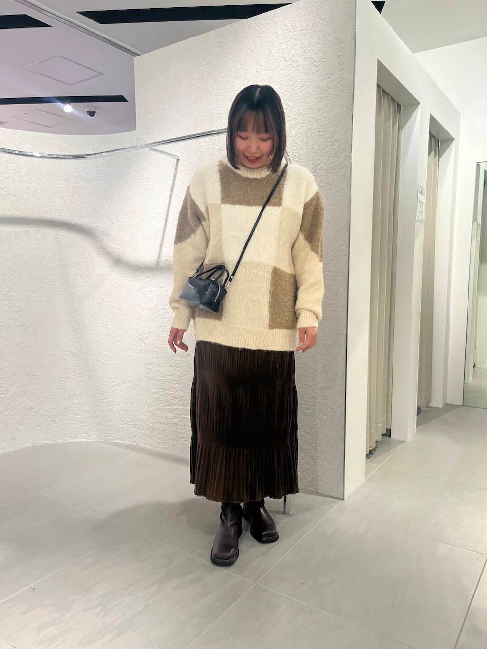 トップスは少しシャギー感があるので、ふんわりとした可愛く女の子らしいコーデに🧶