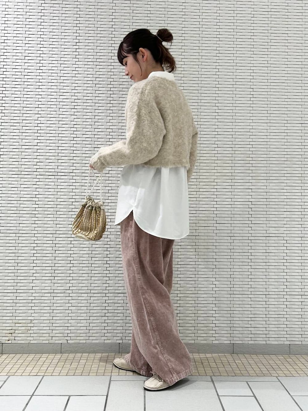 シャギーですがボリューム感で抑えめでスッキリなシルエットで着ていただけます。