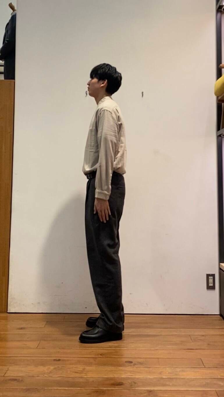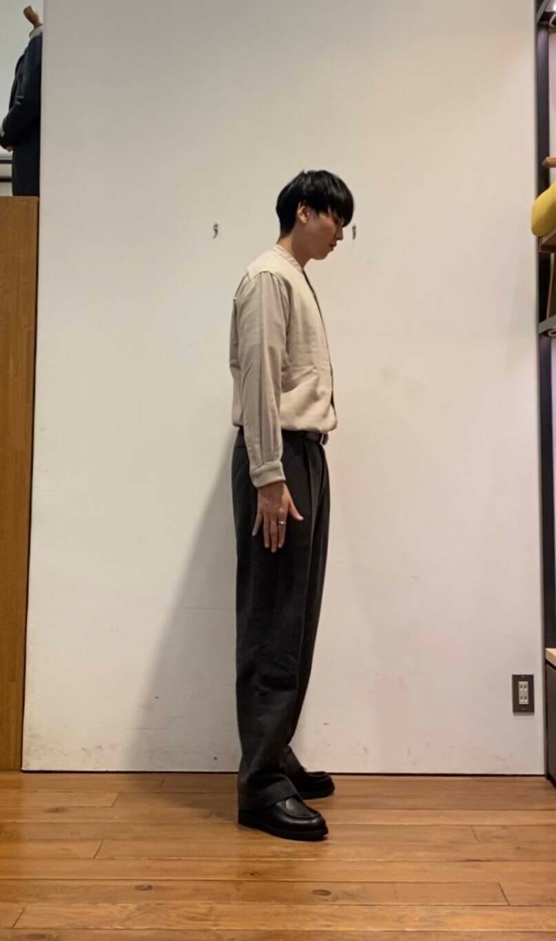 ワンタックパンツは、ウール混ならではのしなやかな落ち感が特徴のアイテムで、ストレートシルエットなので何にでも合わせやすい仕上がりとなっております!