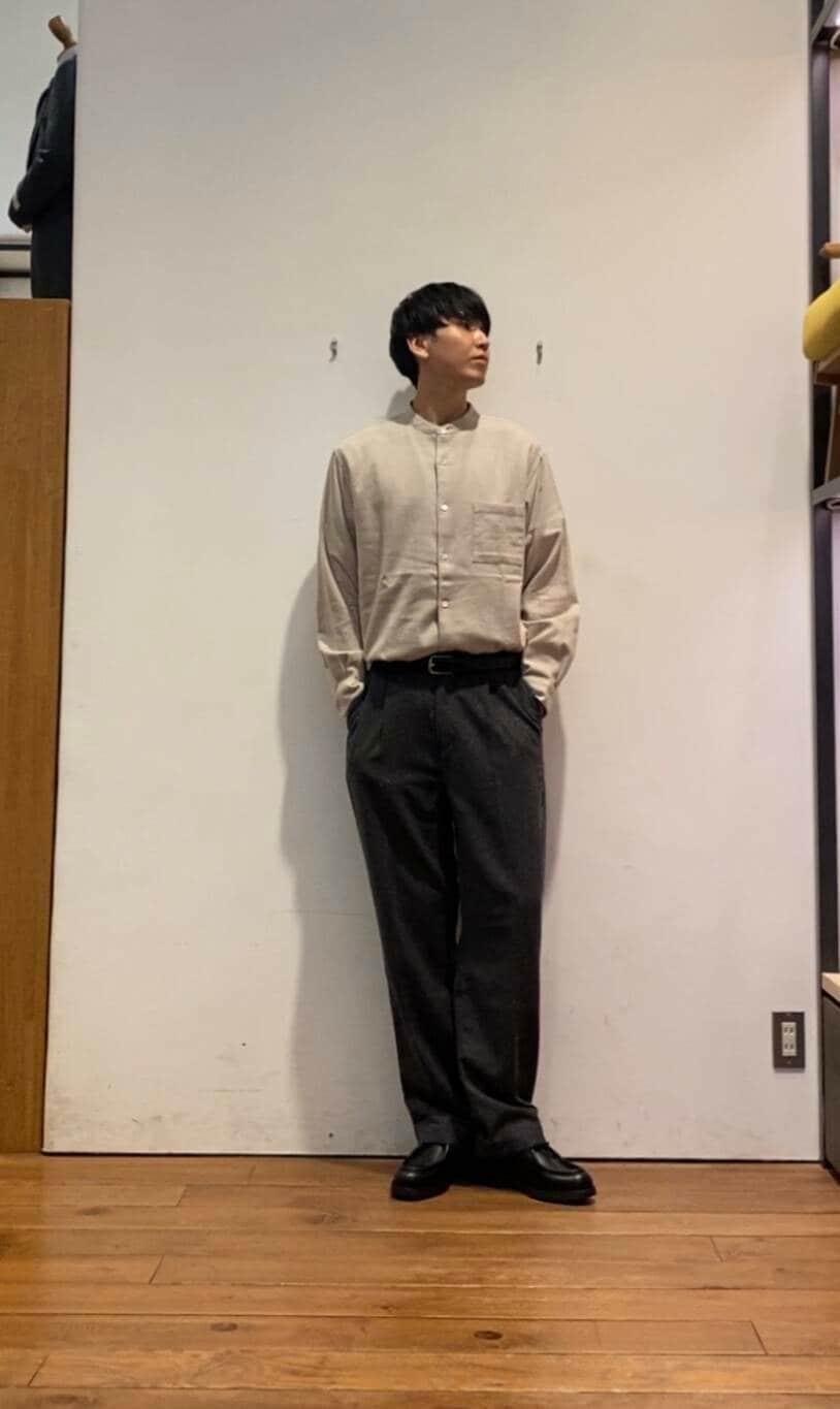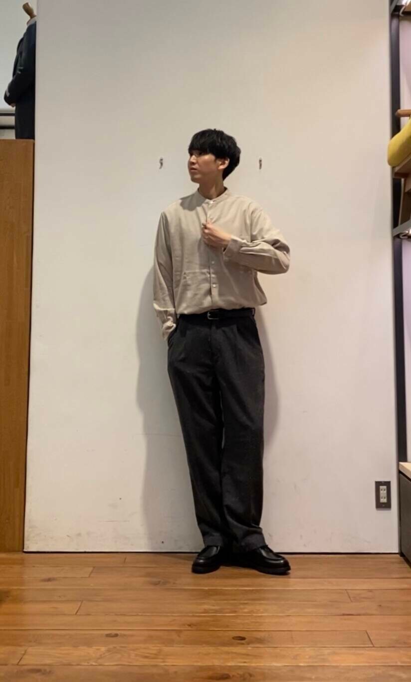 シャツは、毎年人気のネル生地バンドカラーシャツとなります!