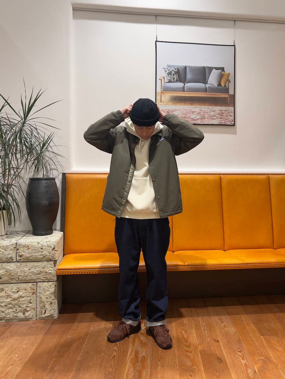 ジャケットはPatagoniaの定番コーチジャケットで秋らしくカラーはカーキにしました。ジャケットの裏地はボア素材で今の季節だけでなく本格的な冬場でも使えるアイテムです。