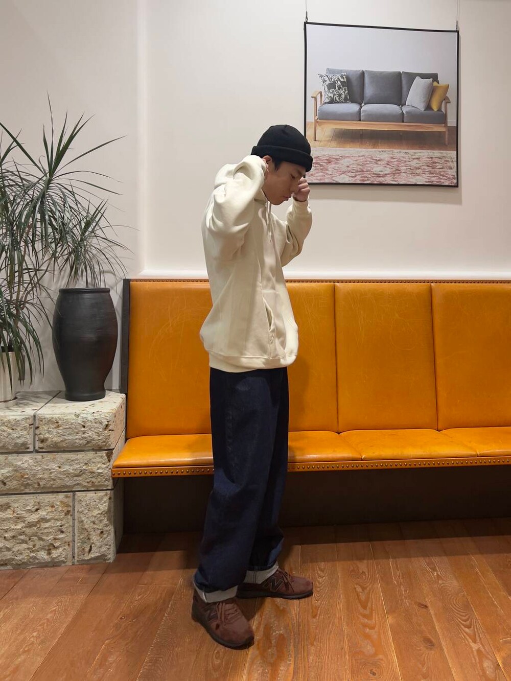 スニーカーはNew Balanceの定番モデル996で全体的にアースカラーでまとまるようにカラーはダークブラウンにしました。