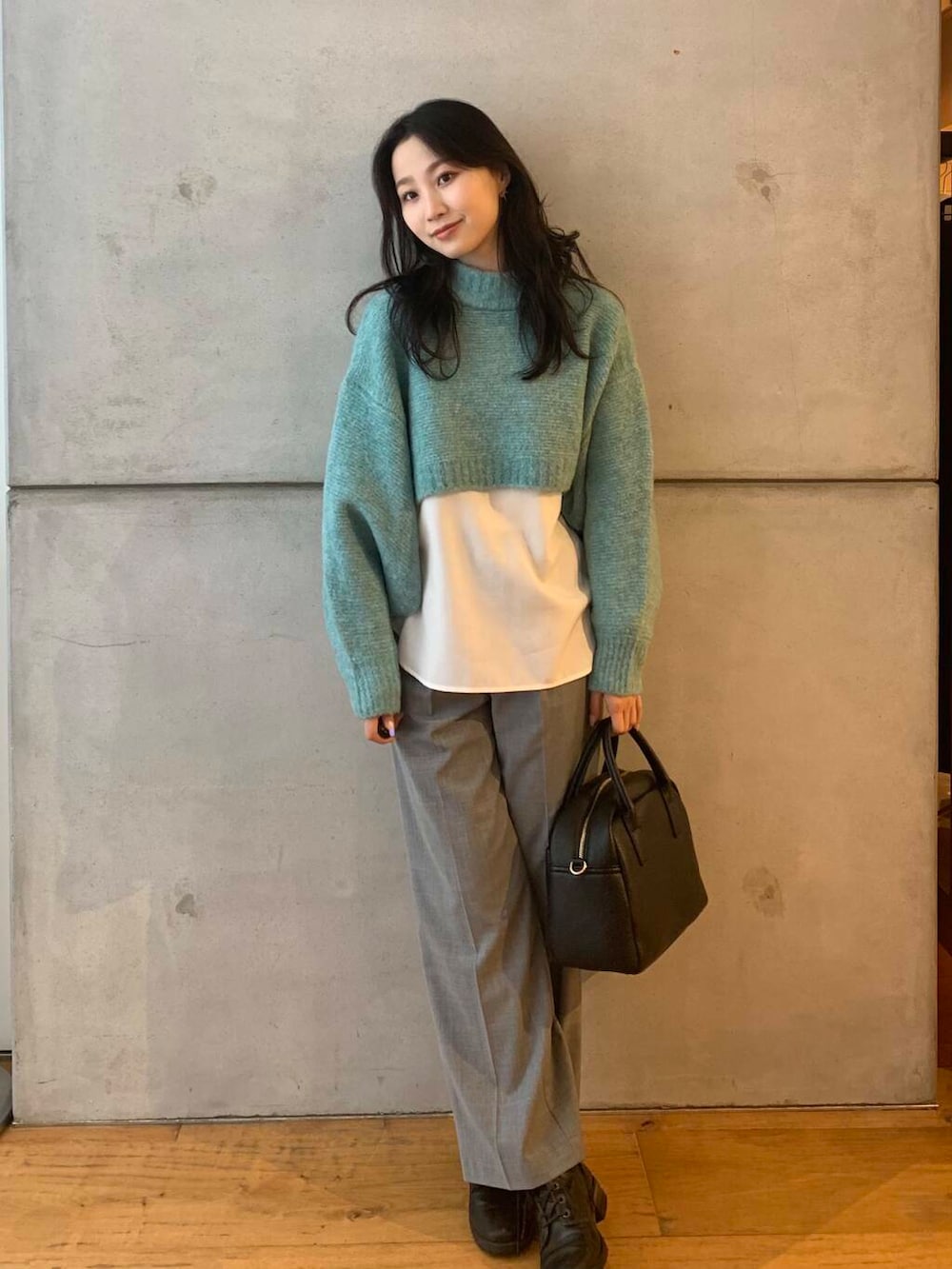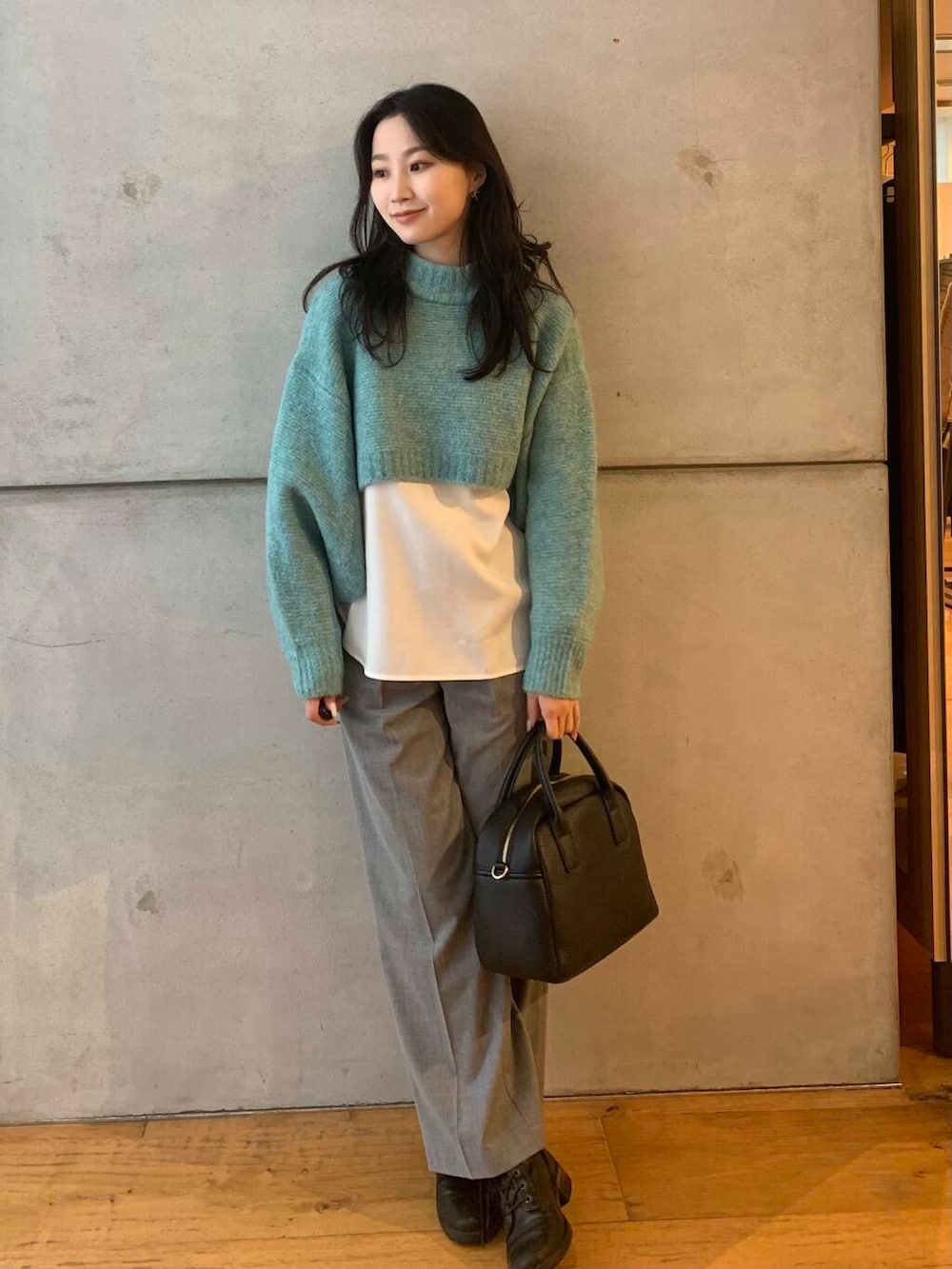 クロップド丈のものはハイウエストのボトムと合わせるのも一つですが、レイヤードするのもおススメです!