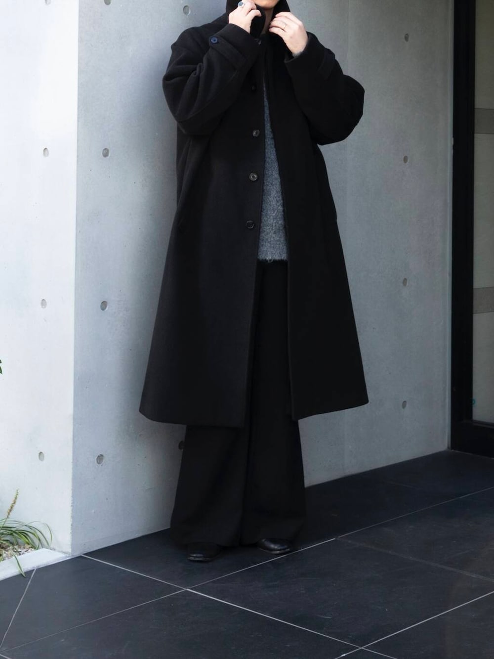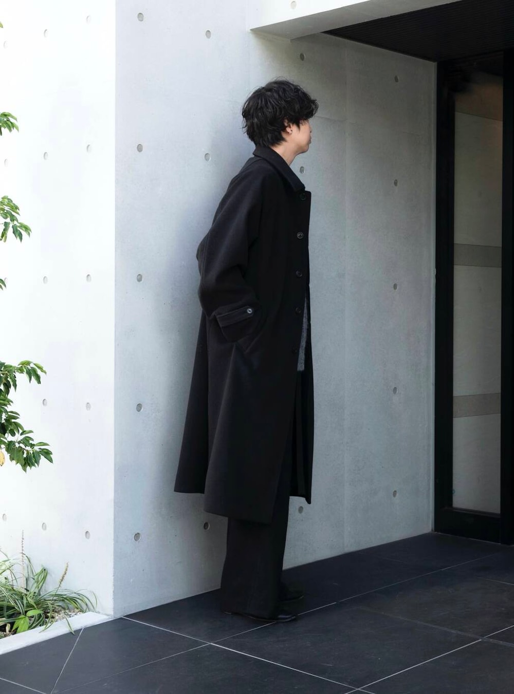 バルマカーンコートはしっかり丈長でロングコートらしいシルエットがお楽しみいただけます!