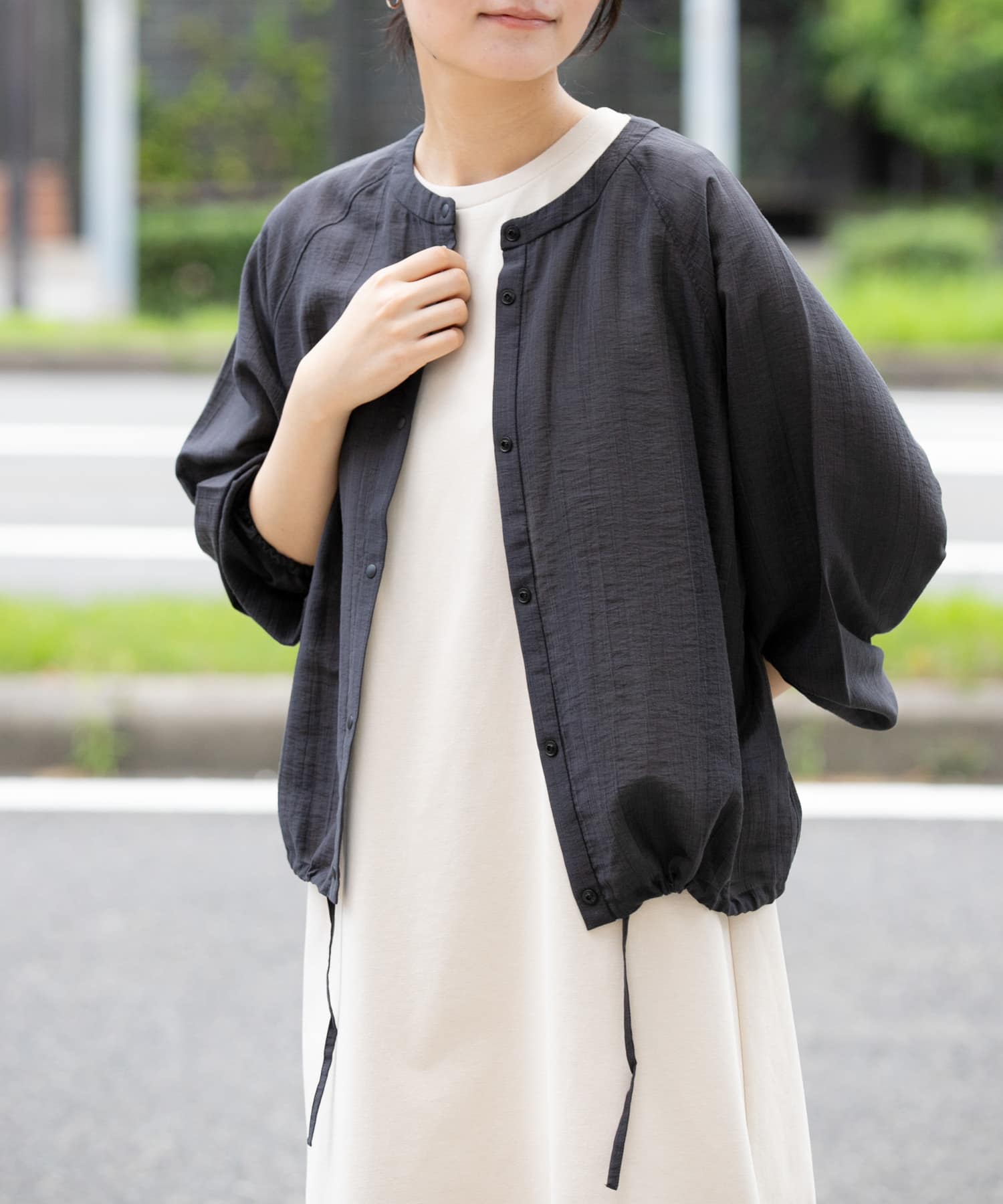 シャツカーディガンはシアー感があり、今の時期に羽織りやすく、スナップボタンなので着脱もしやすいです。