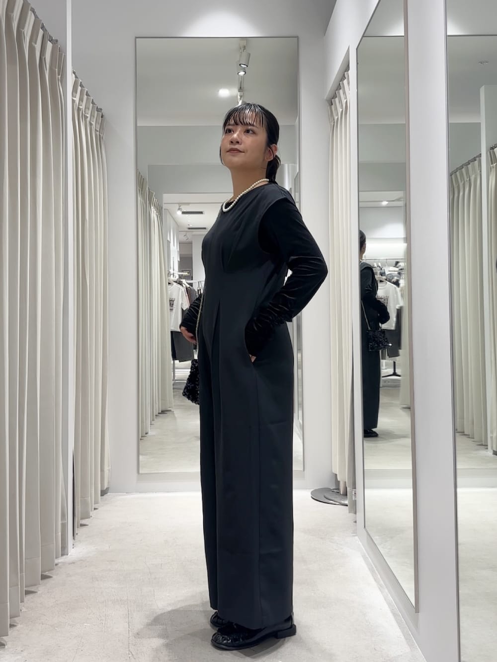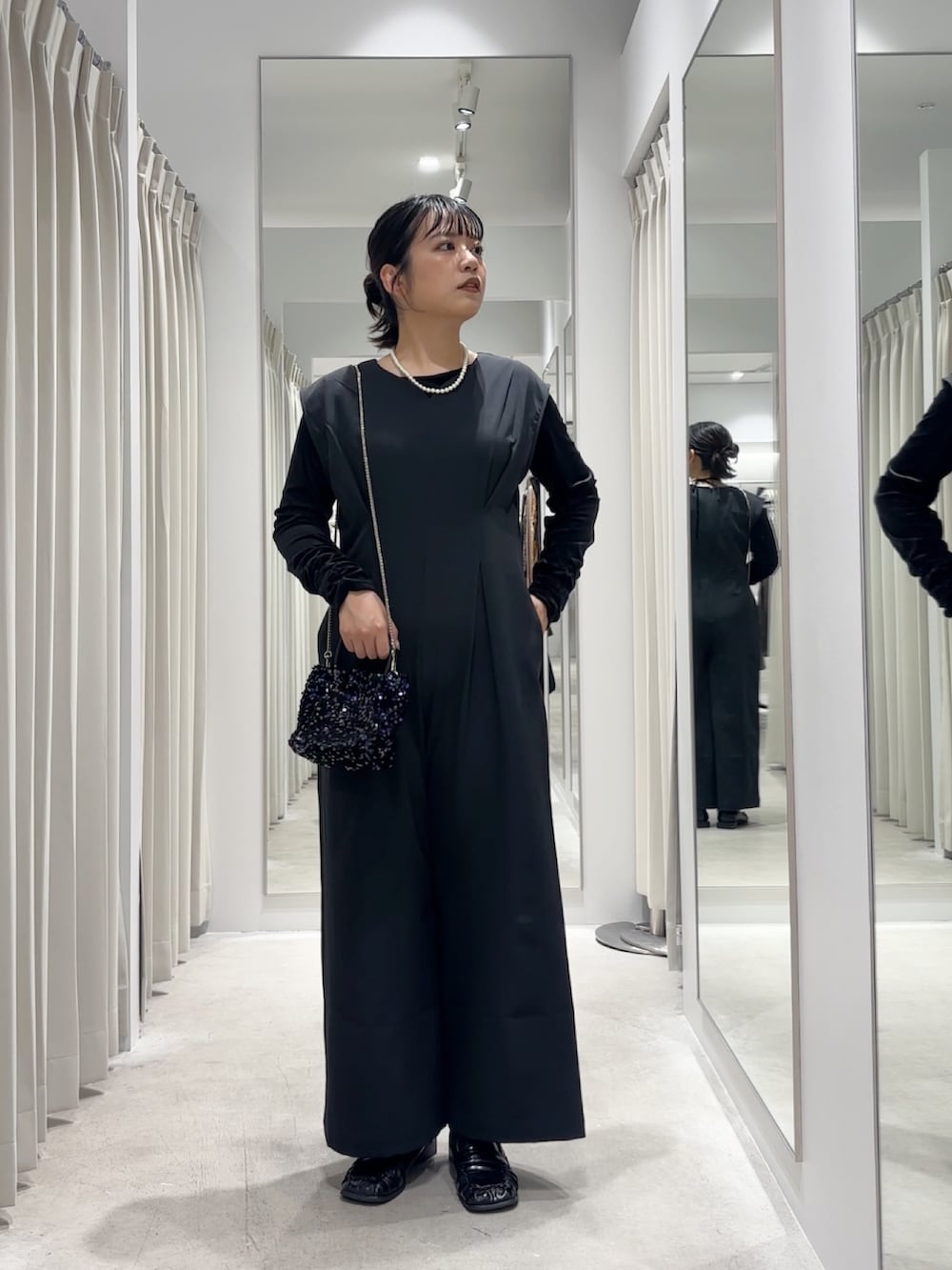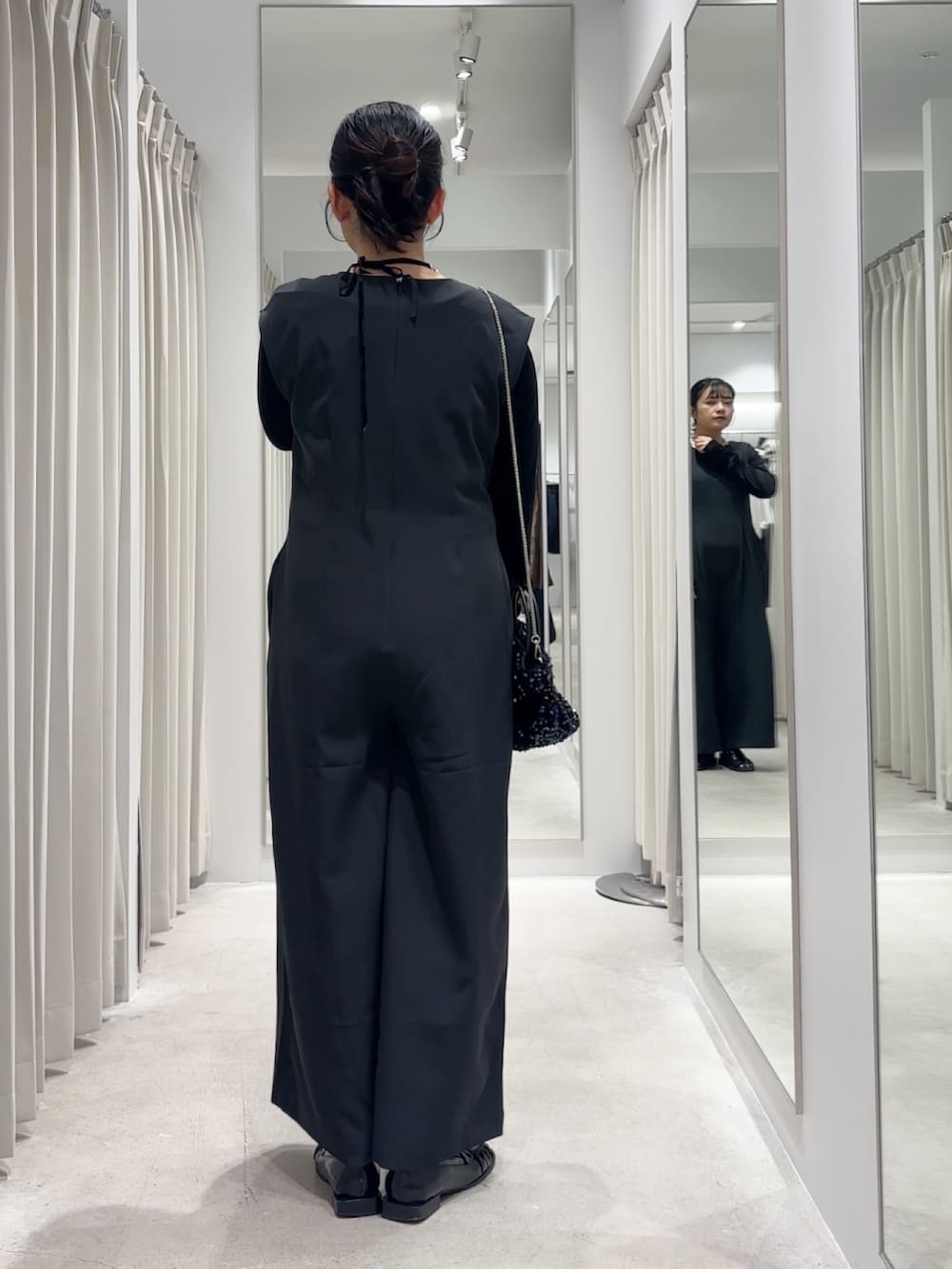 オケージョンでも普段着でも着用しやすいこちらのオールインワンアイテムは、タックが上下で入っているので、スタイルアップ効果もあります◎