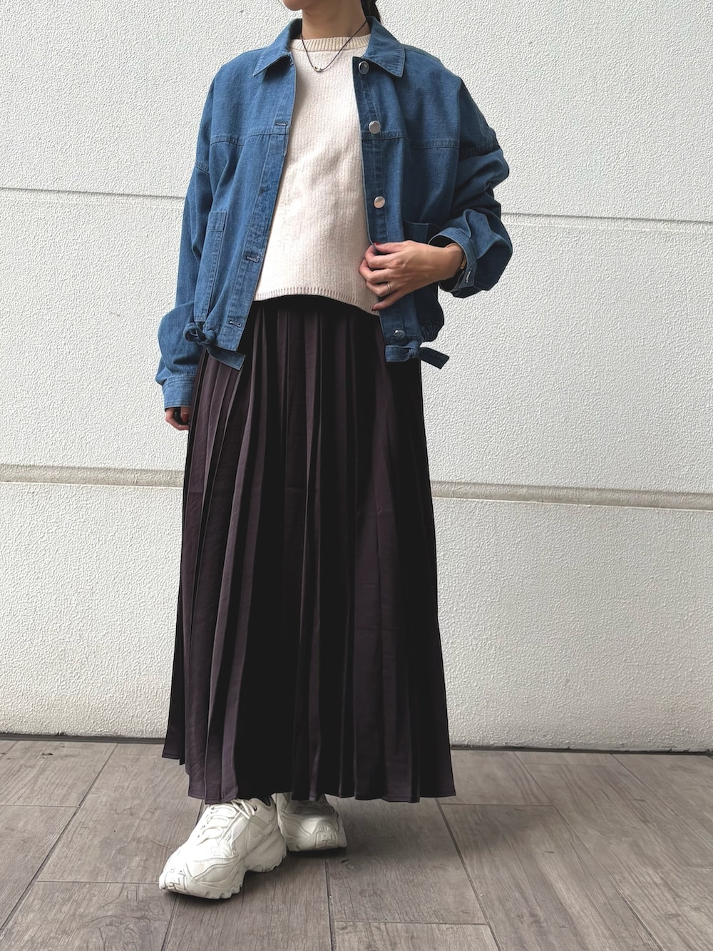 珍しいデザインのデニムジャケットは、裾が絞れて短丈で着こなせるので、低身長の方にもオススメです⸜❤︎⸝