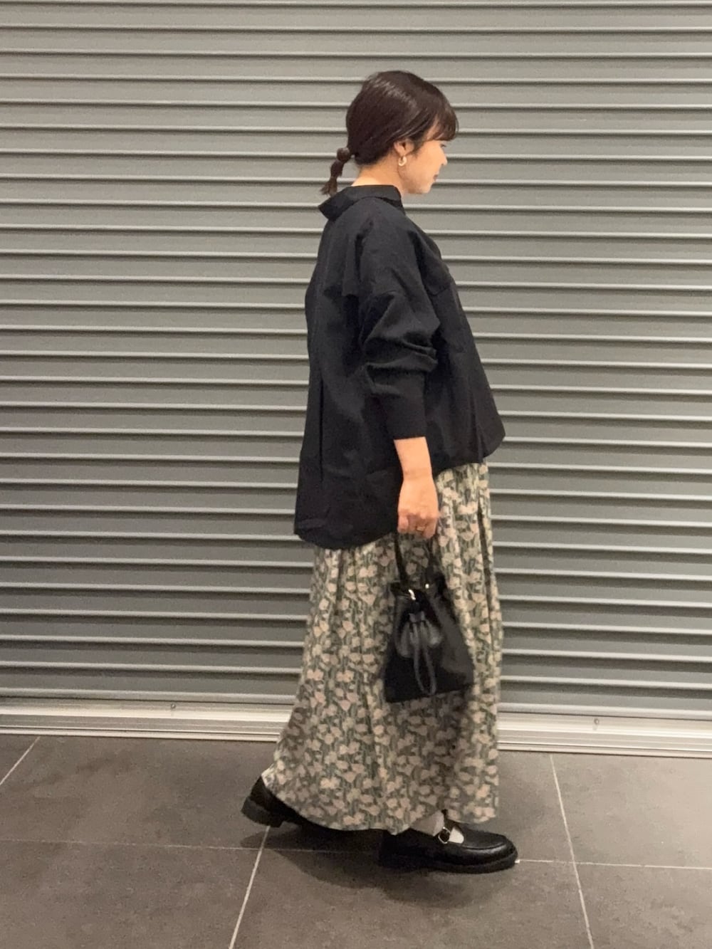 リバティプリントスカート合わせで週末お出かけコーデにしました。
