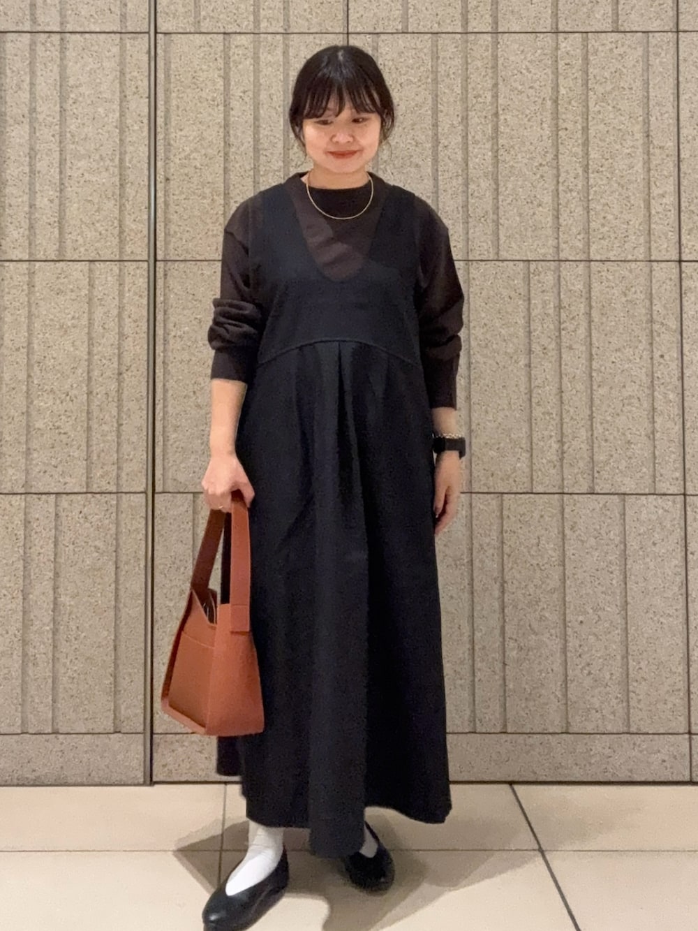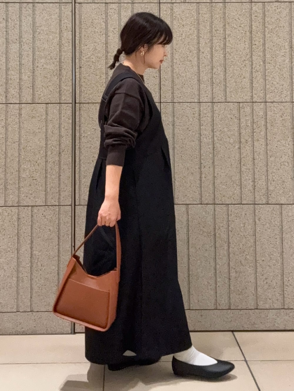 今回はこの秋おすすめブラウンコーデにしました。ワンピースはゆったりシルエットで着丈も長すぎず楽ちんです。