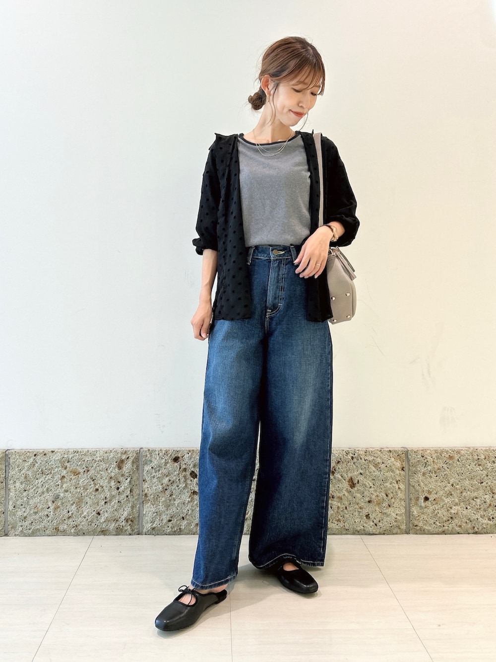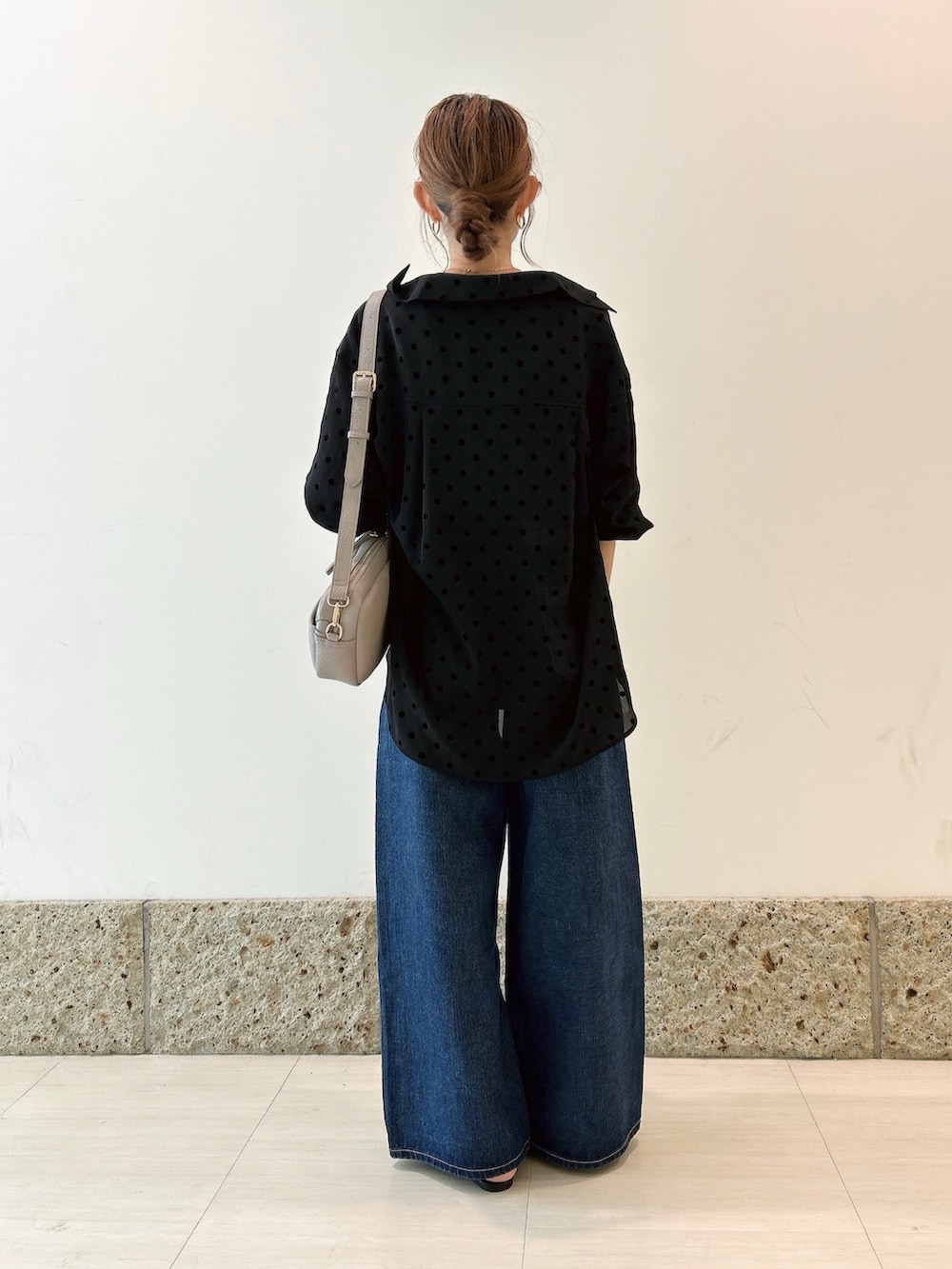 ブラックのシアーシャツを合わせて統一感を出しました🖤