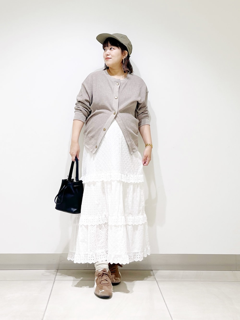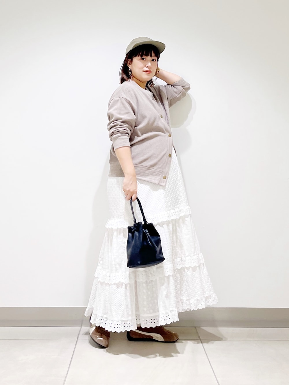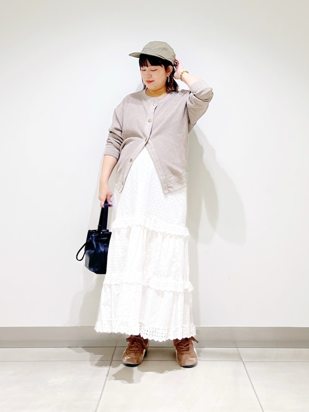 本日は前を開けても閉じても可愛いカーディガンを着てみました。