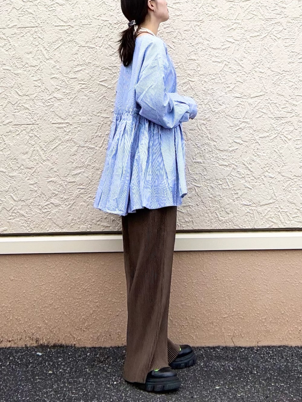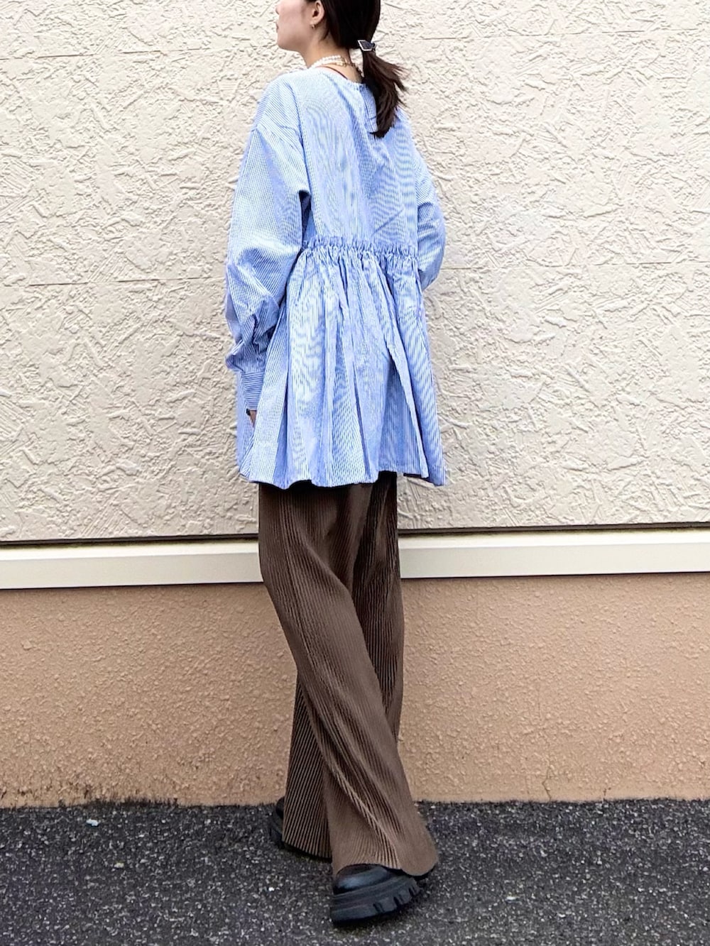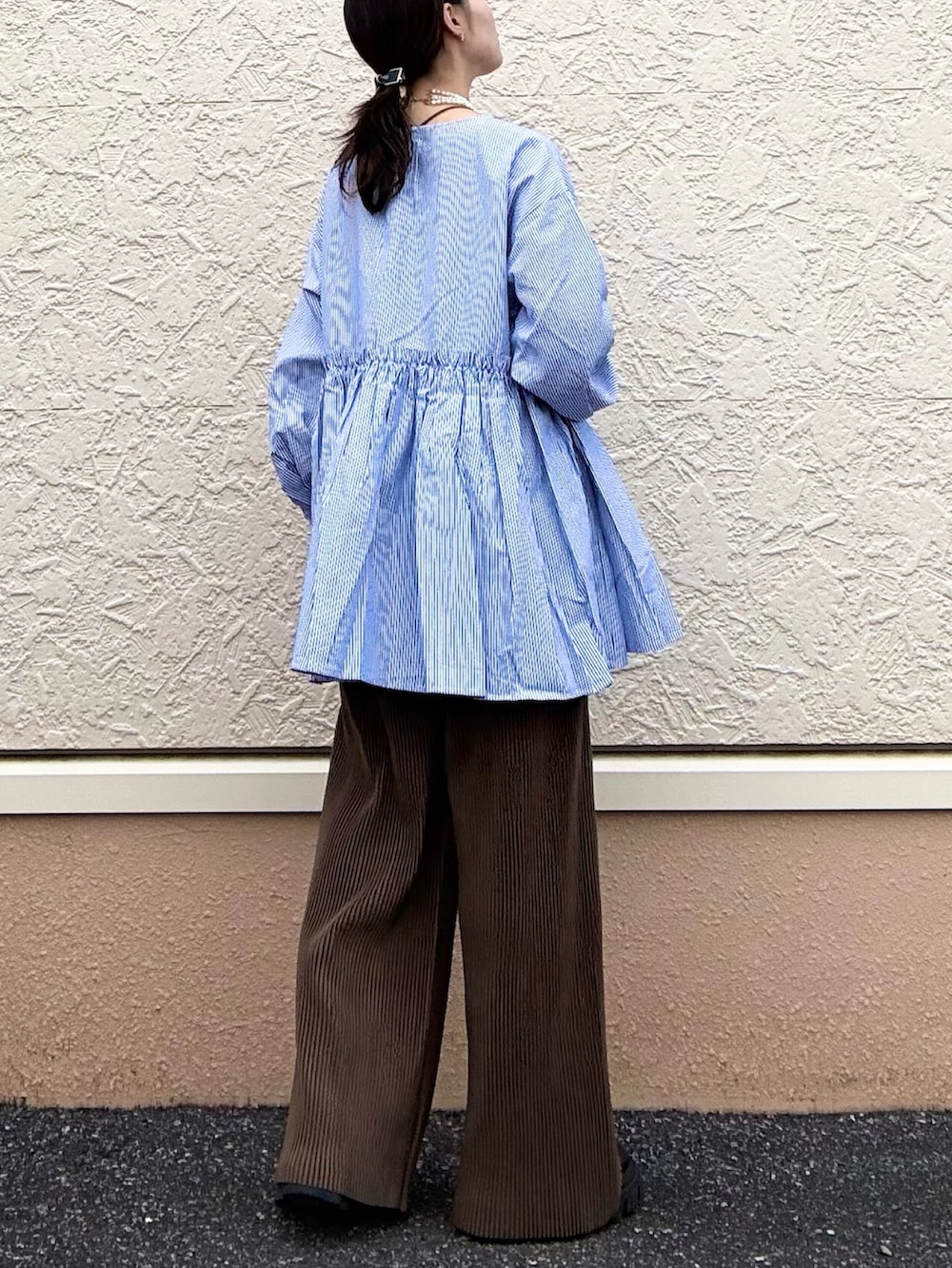 ストライプの爽やかなブラウスに、着心地抜群なこちらのパンツ!