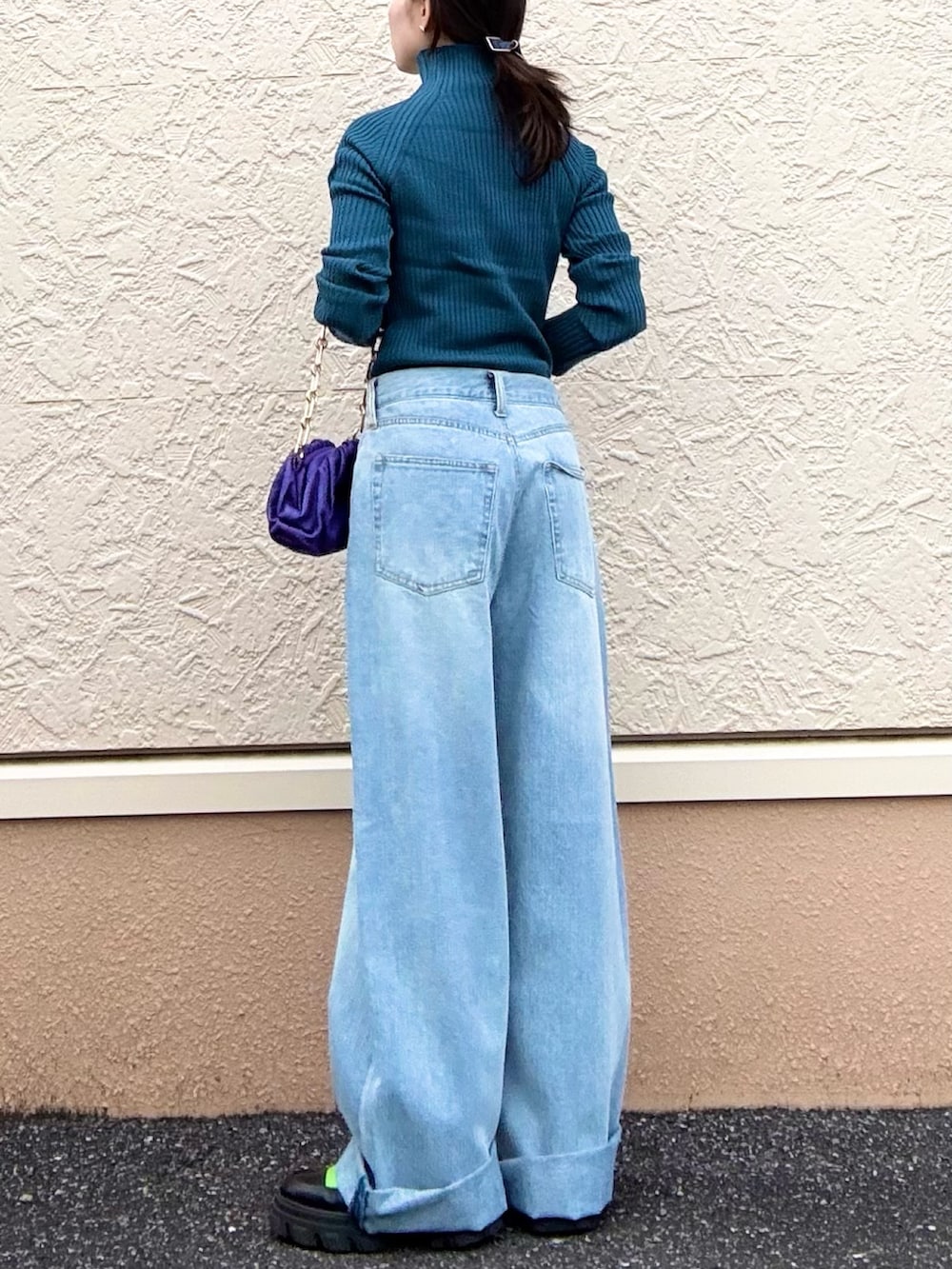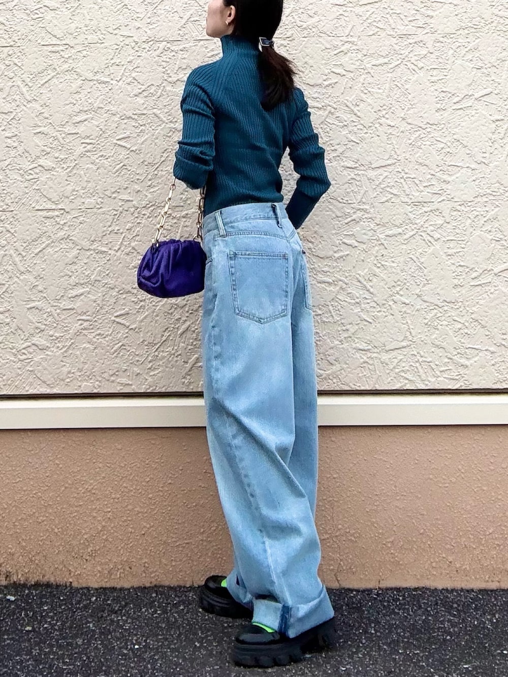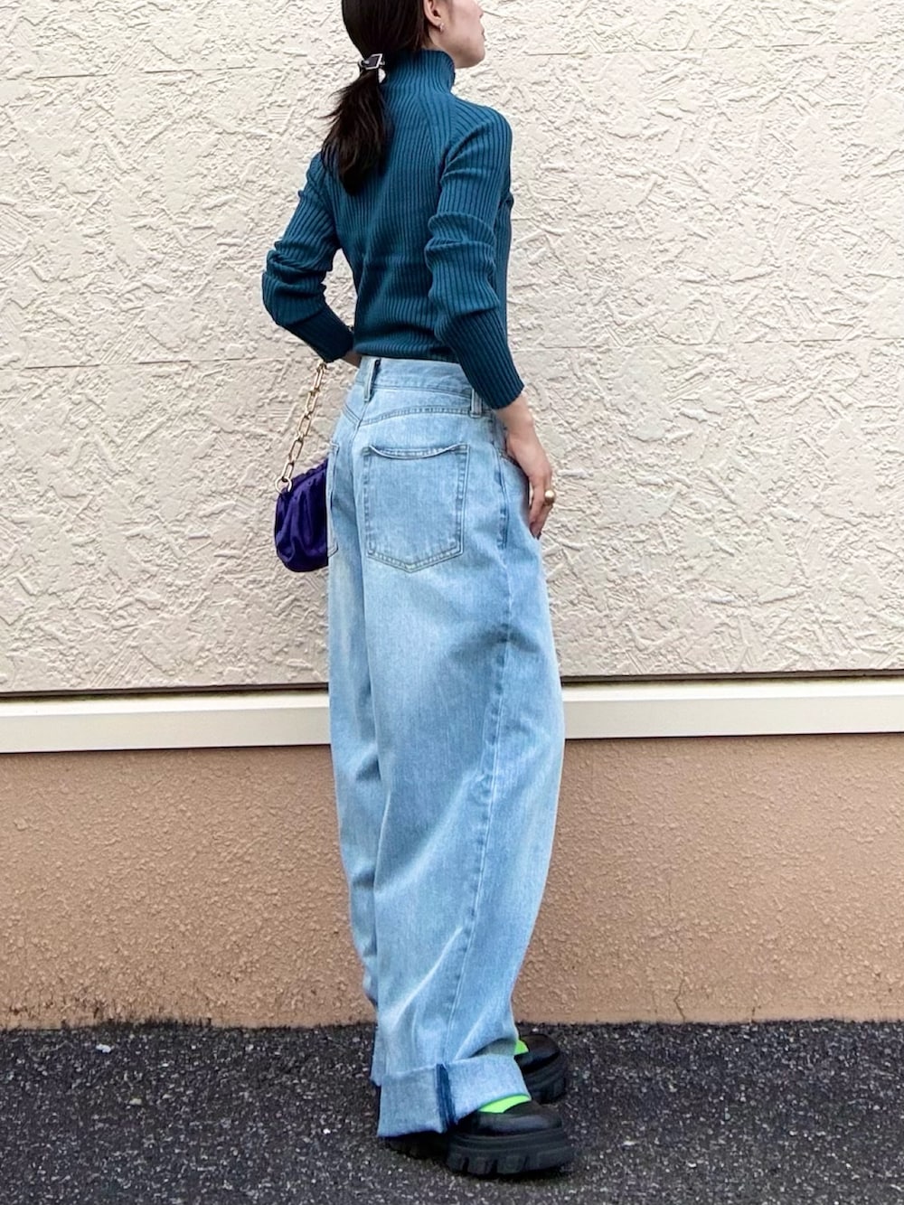 ブルーカラーで統一した、秋らしくも爽やかなコーディネートに!