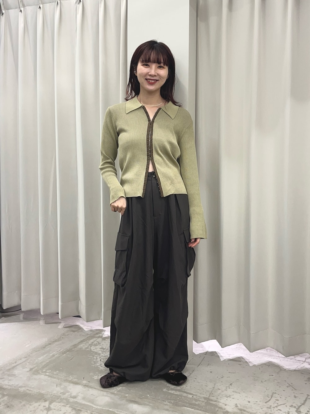 SENSE OF PLACEフロントホックエリツキコンパクトカーディガン