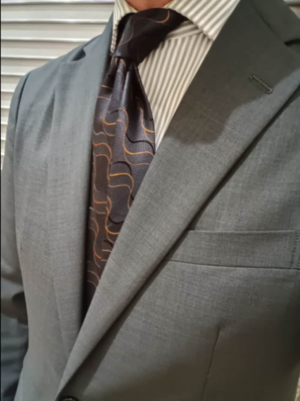 LSTのグレーのスーツスタイルに店舗限定でお取扱いしているholiday&brownのネクタイを合わせました。