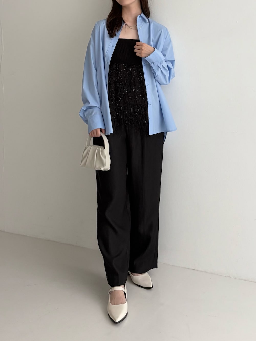 ブルーのシャツは飽きが来ず、長くご愛用いただけること間違いなし。