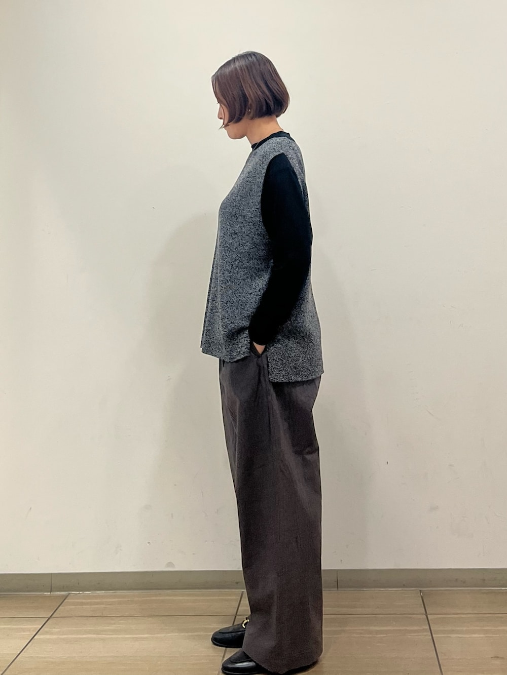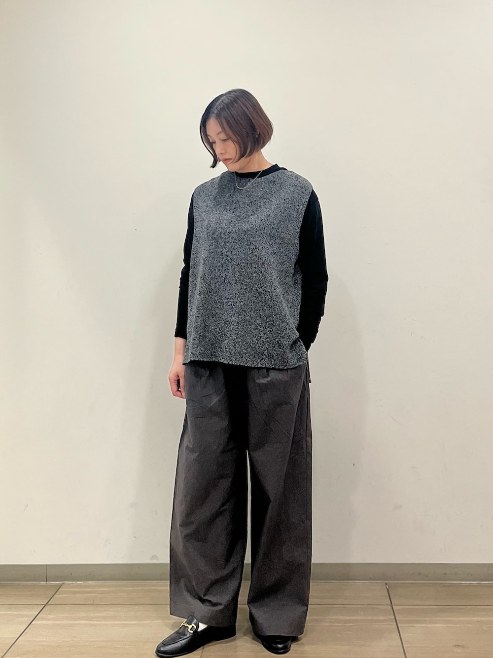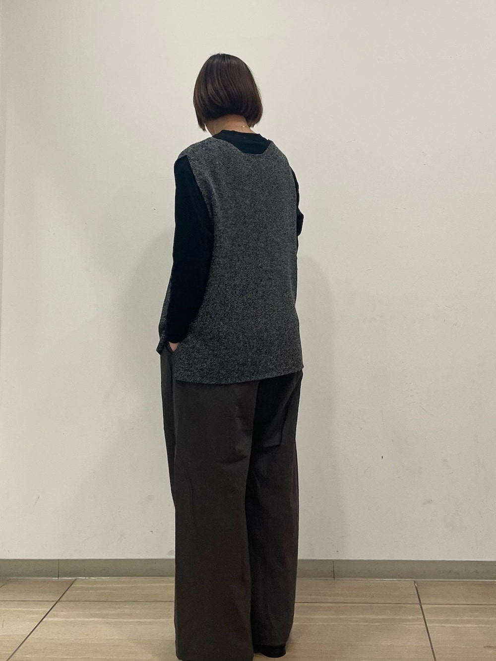 ドライタッチな綿100%のベストは重ね着しやすいサイズ感でカットソー、シャツなどとレイヤードしやすく、シーズンレスで着られるアイテムなので万能です!