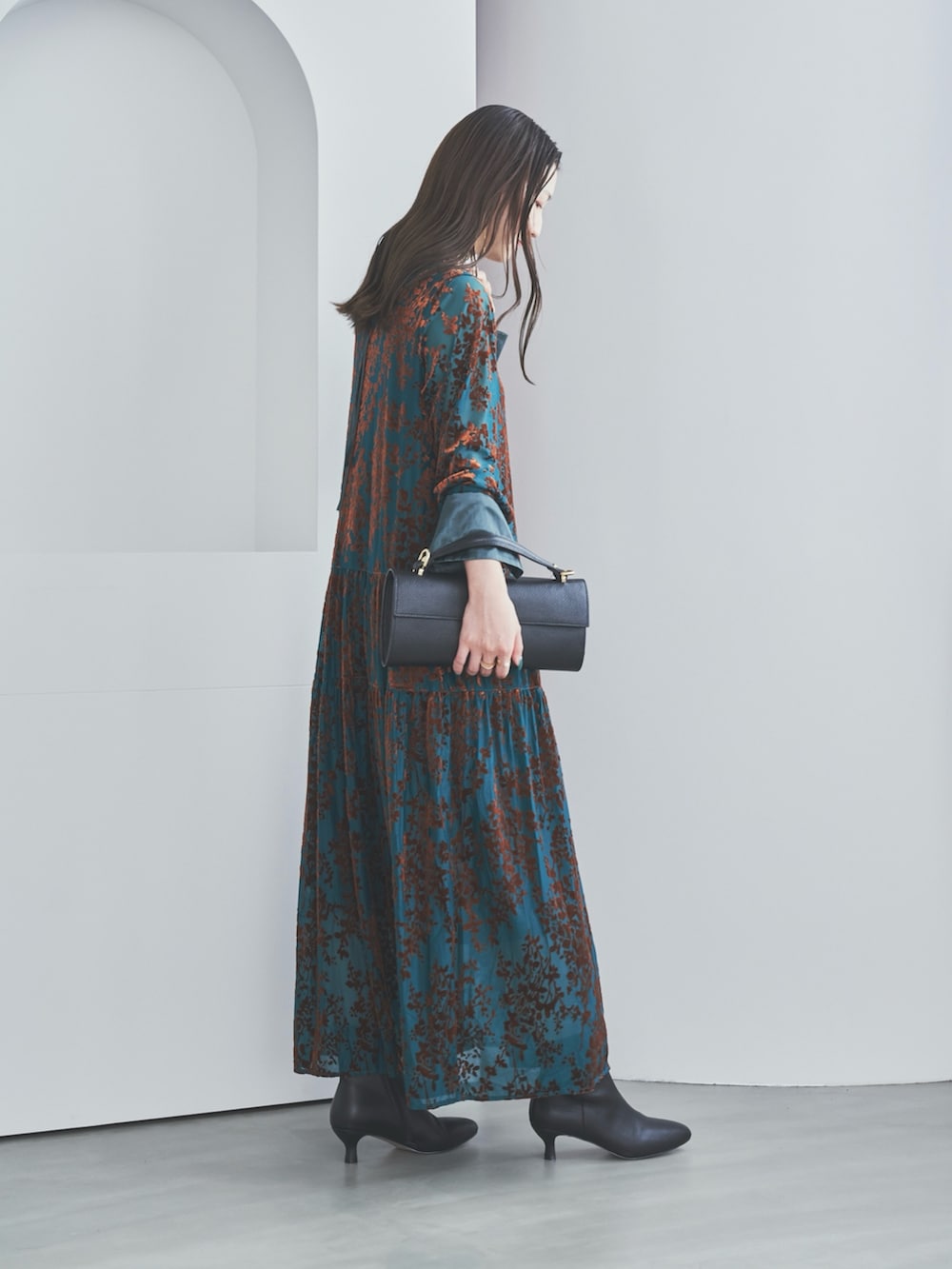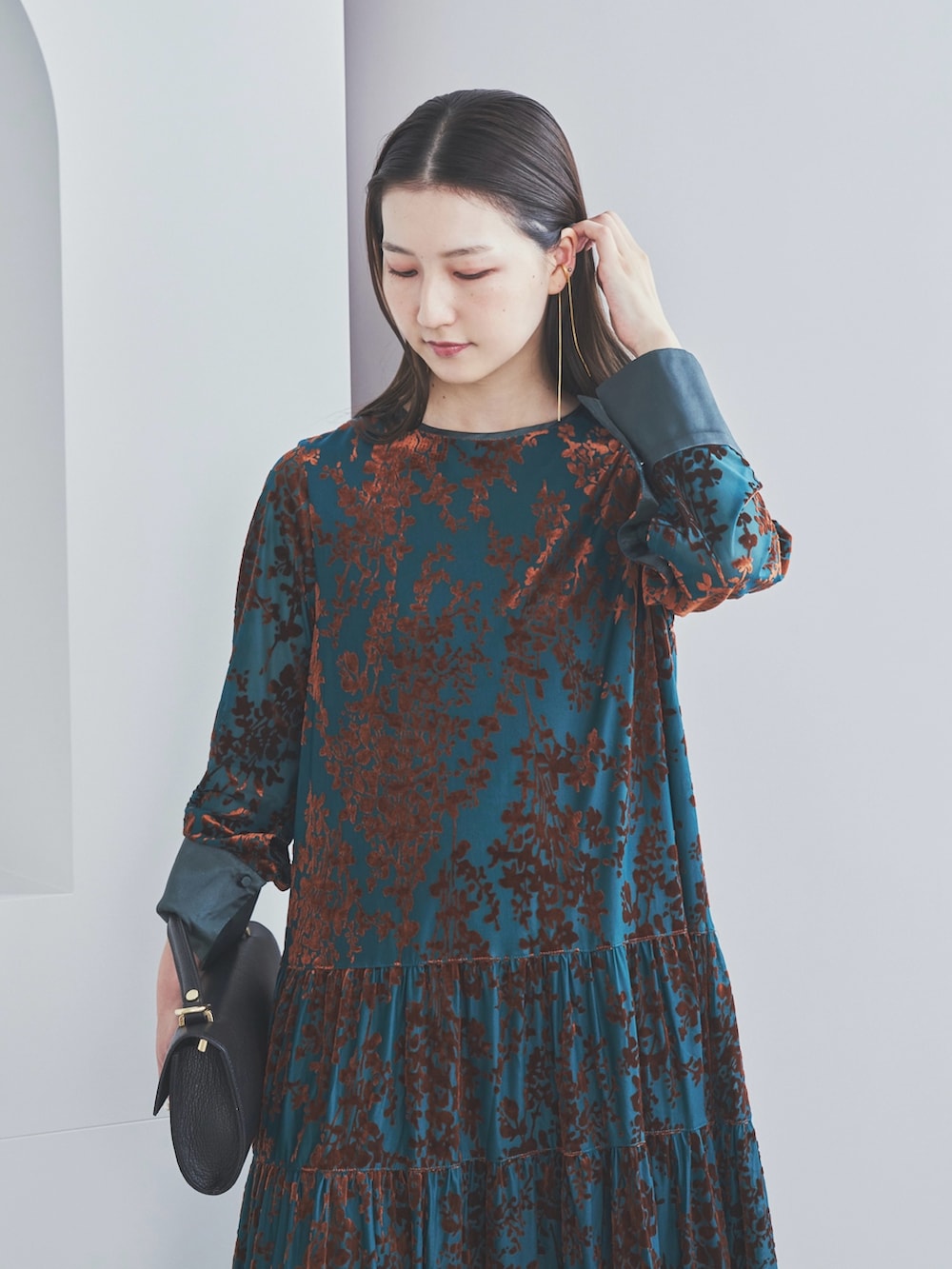 ROSSOフロッキープリントティアードワンピース
