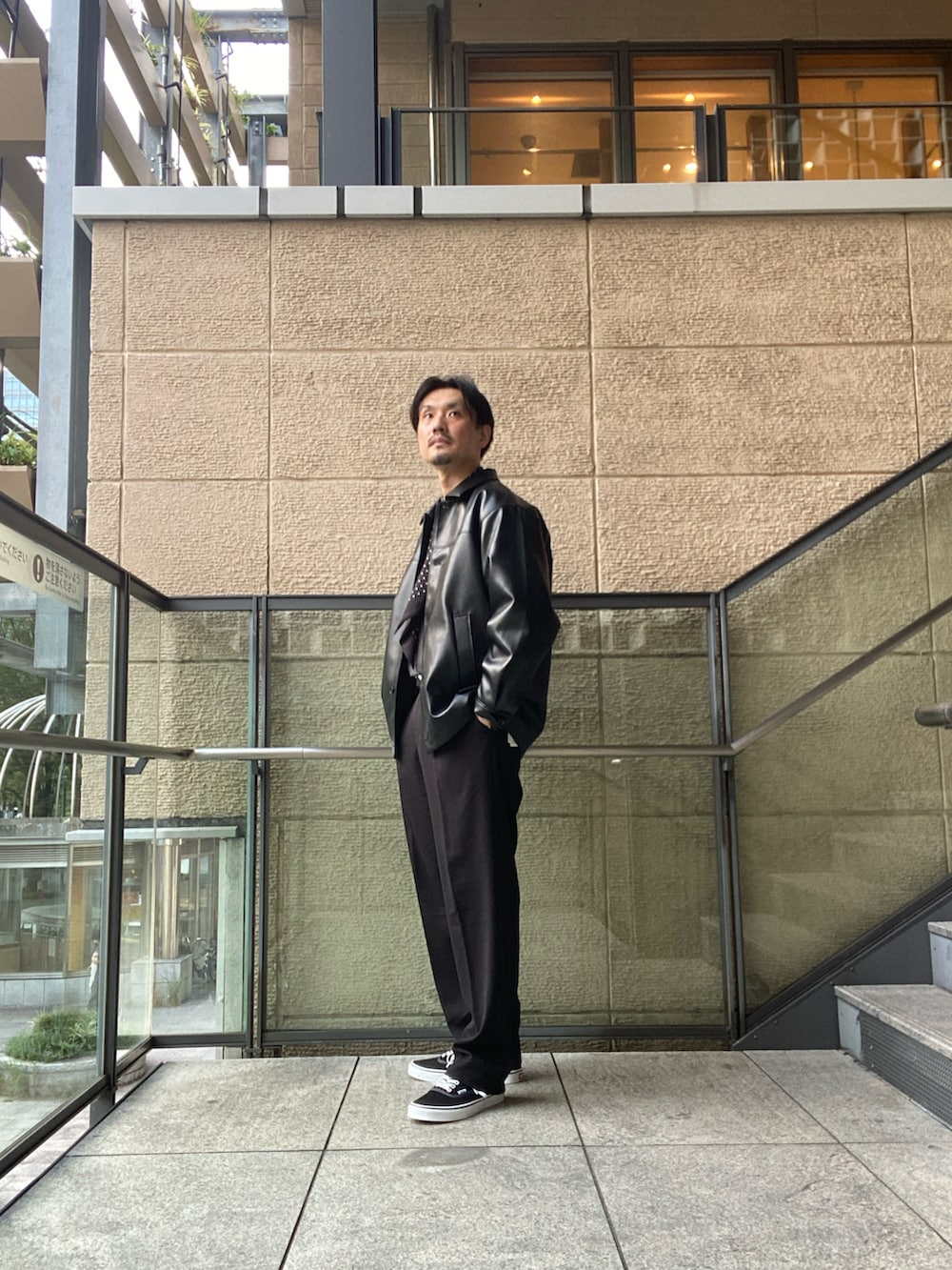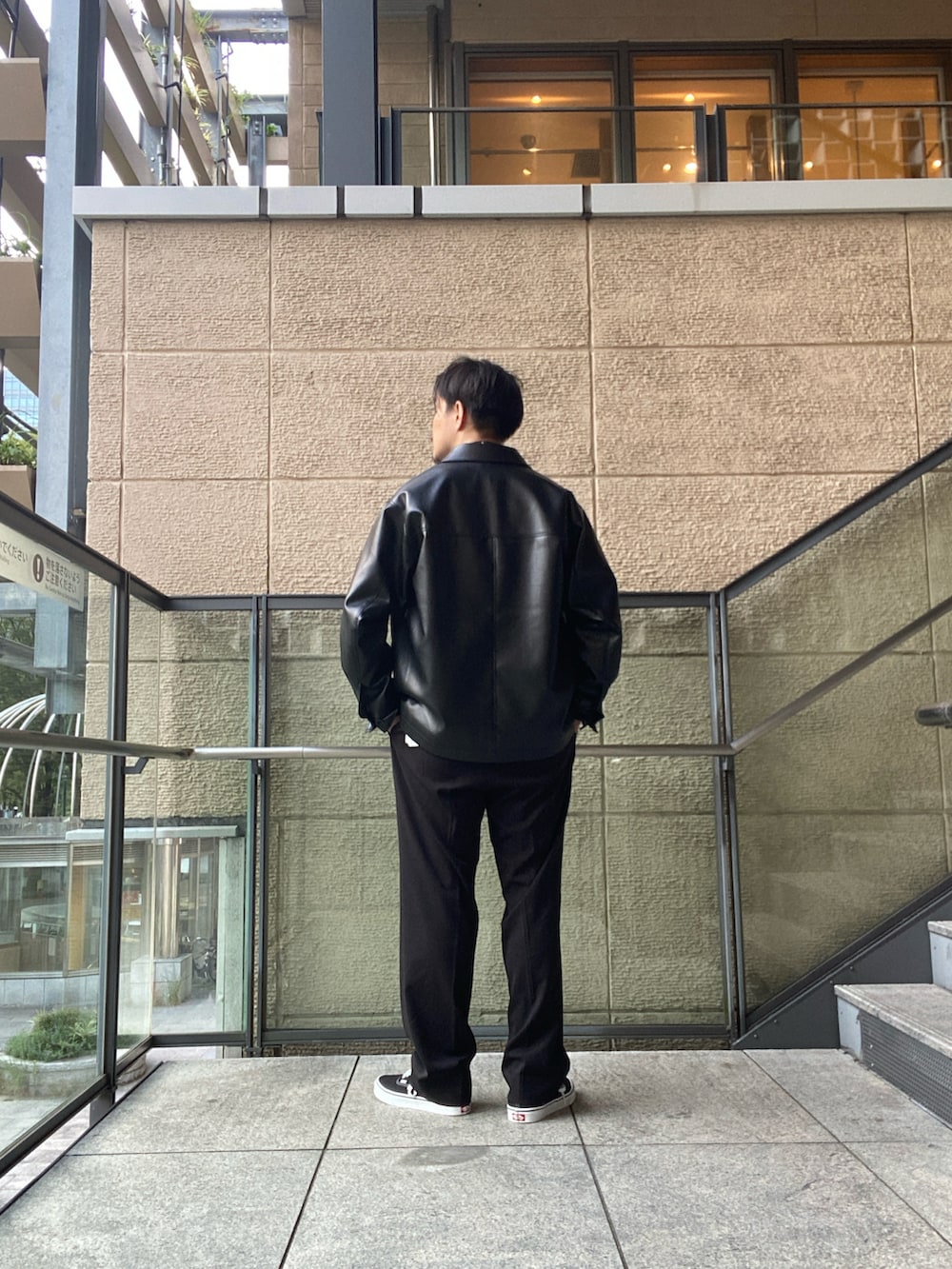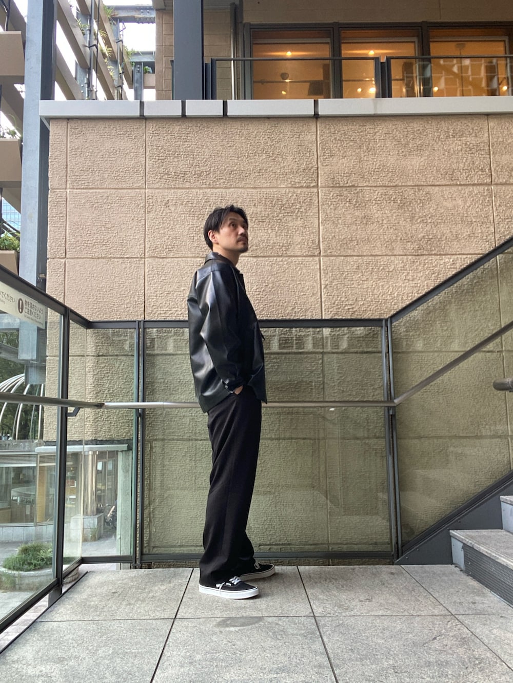 程よい光沢と肉厚感を持つ、ラムレザー風フェイクレザーを使用しており、しなやかで柔らかな着心地が魅力の一着です。
