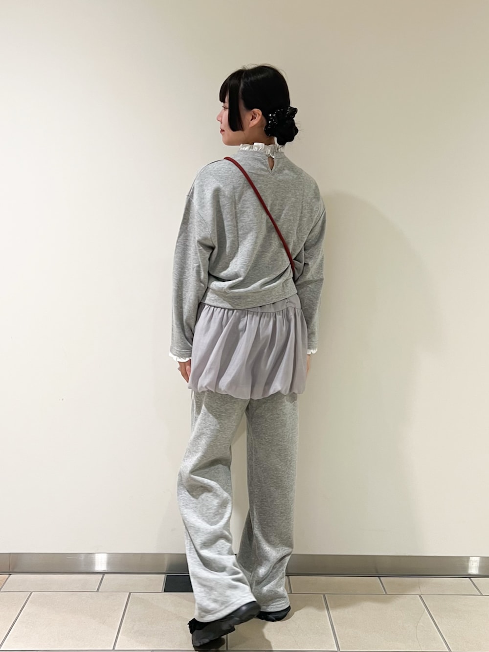 フリル付きのスウェットは1枚で甘めカジュアルなコーデになってとても可愛いです꒰🤍꒱