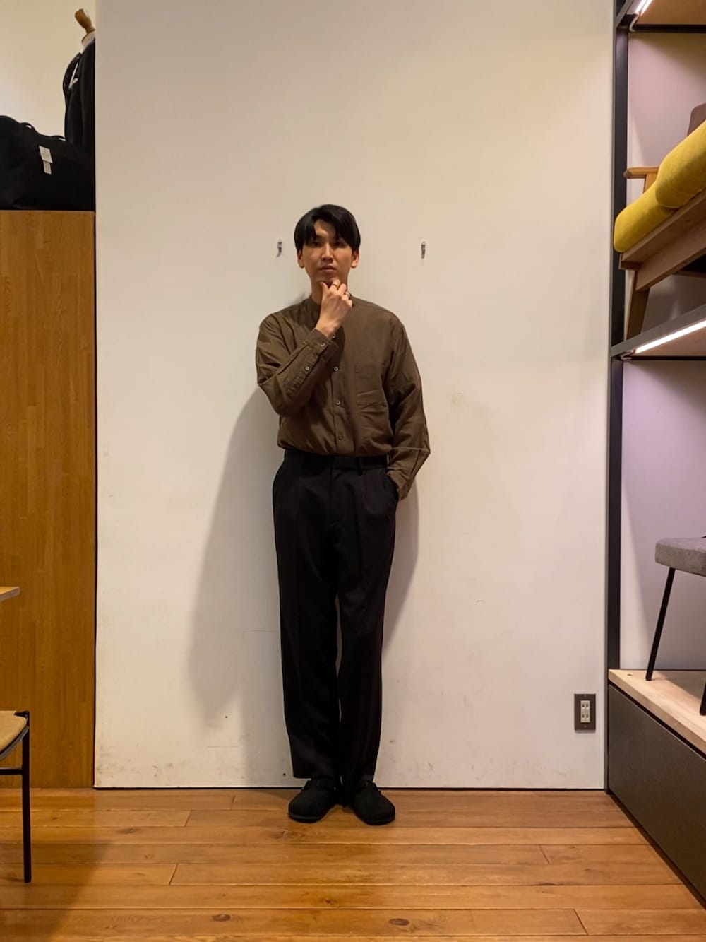 DOORSピーチ起毛 バンドカラー ロングスリーブシャツ