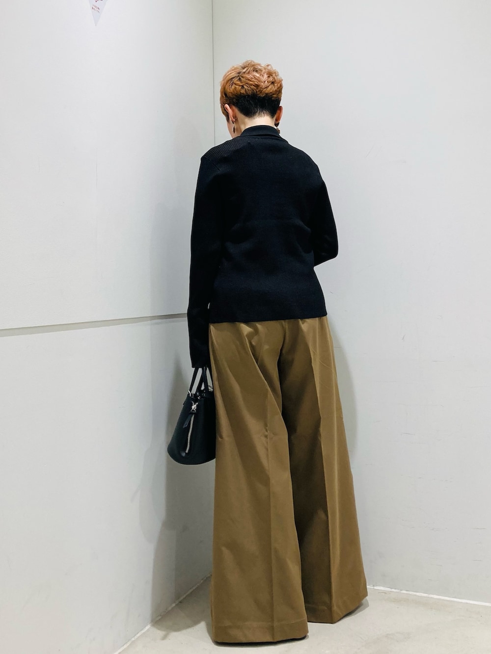 バギーシルエットのパンツは、ツヤ感じが高見えで、カジュアルからきれいめも👍