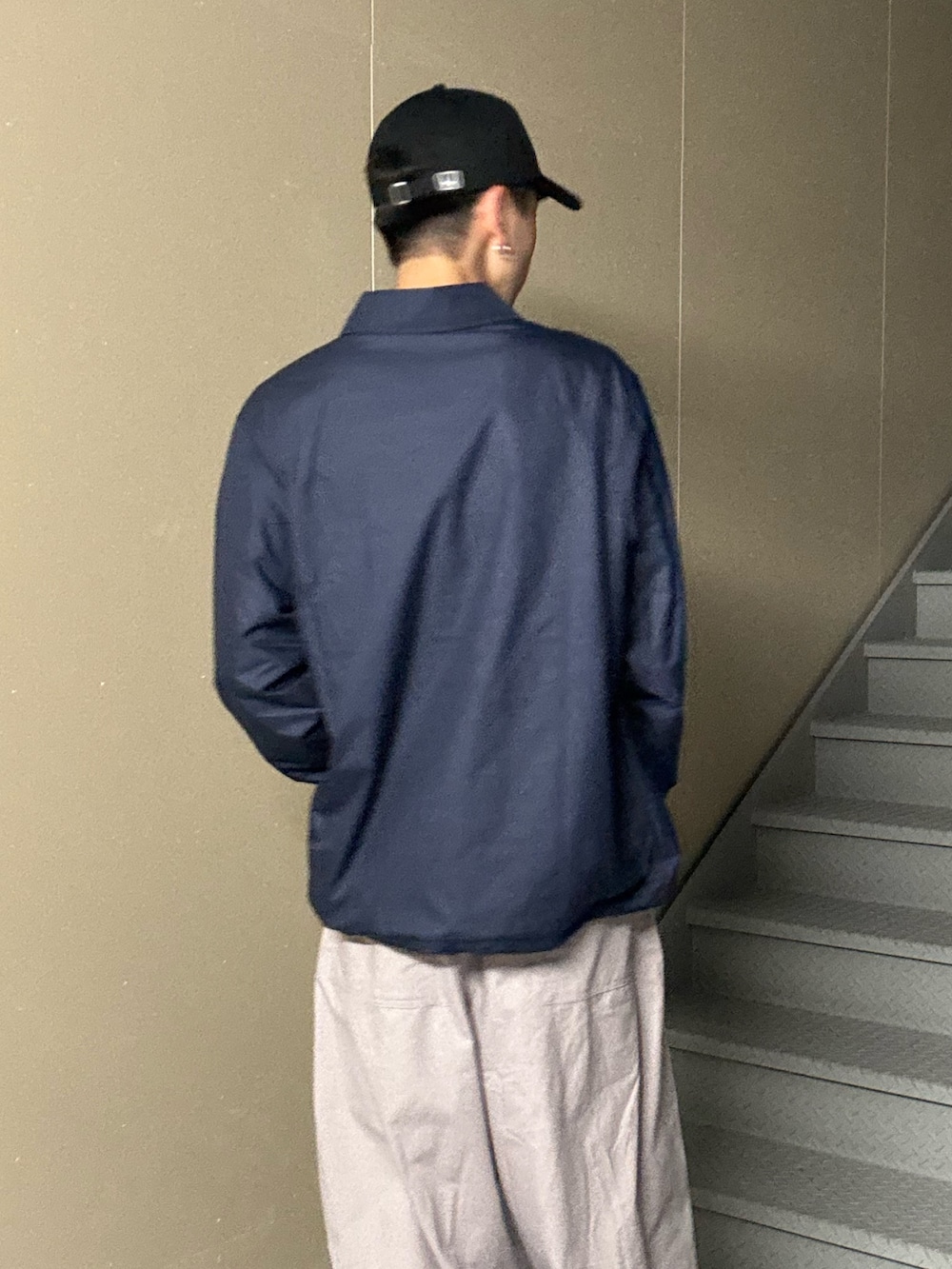 さらにブラックキャップを加えることで、全体のトーンを引き締めつつ都会的なムードを感じさせる仕上がりになっています。