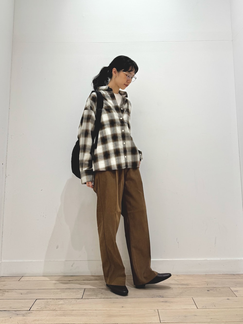 スタンダードなネルシャツはトップスとしてはもちろん、ニットやスウェットの下にも着やすいサイズ感です◎