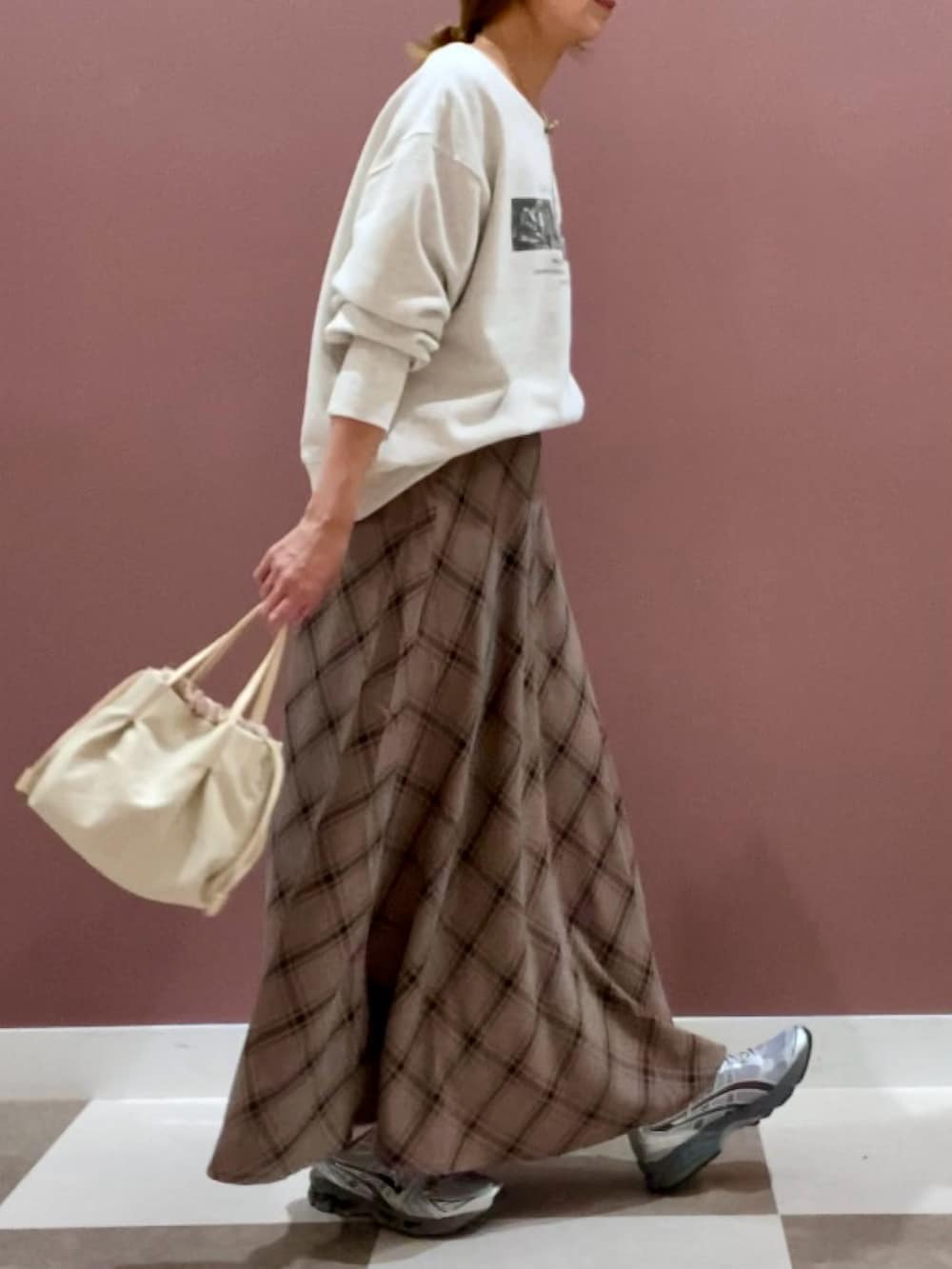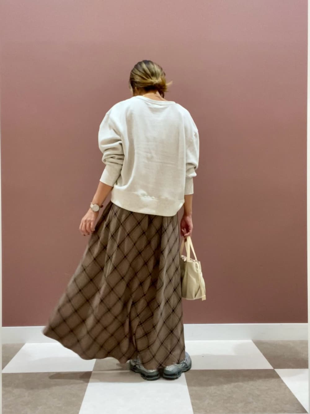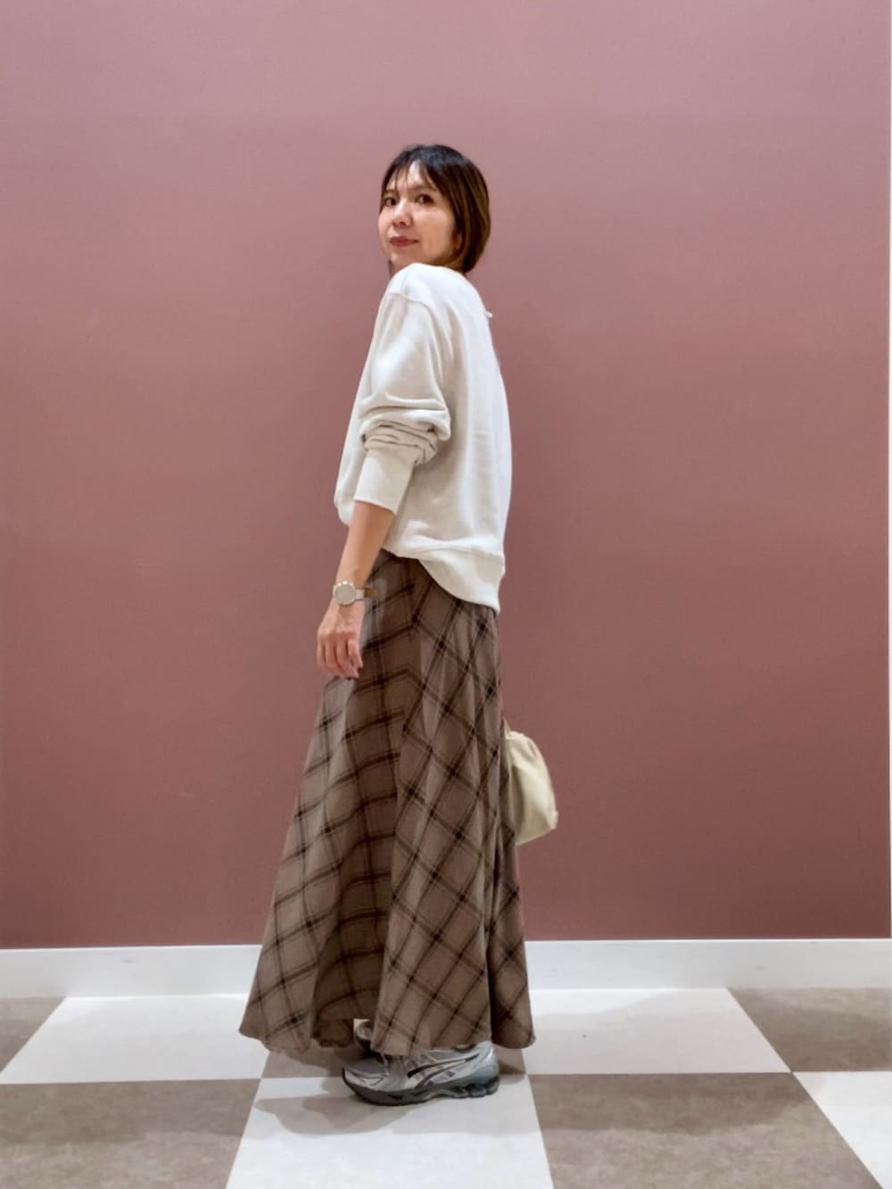 落ち着いた色合いのチェックスカート✨