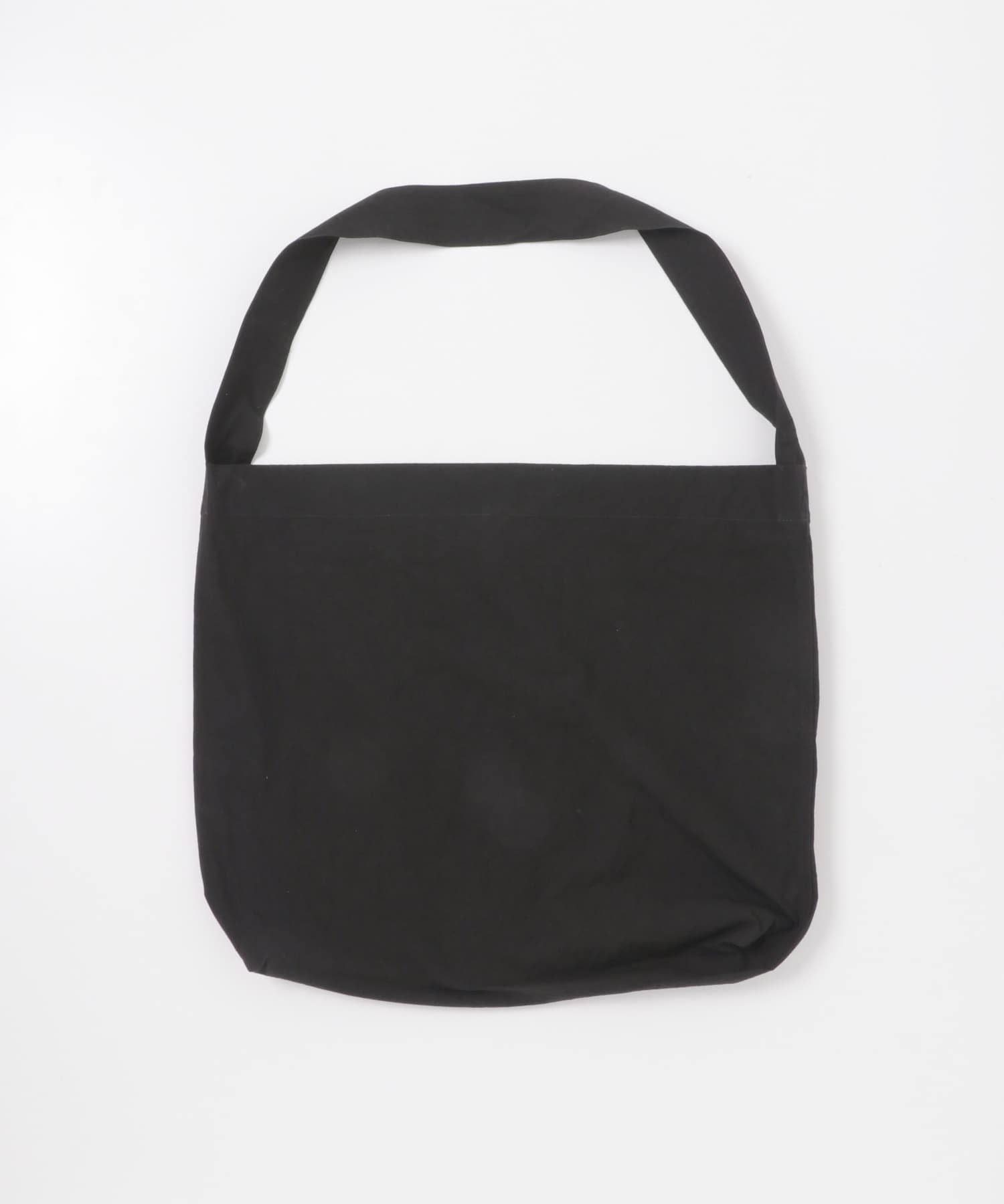 シンプルなショルダーバッグ。軽やかで使い勝手がよく、スタイリング全体を引き締めるブラックがアクセントに。