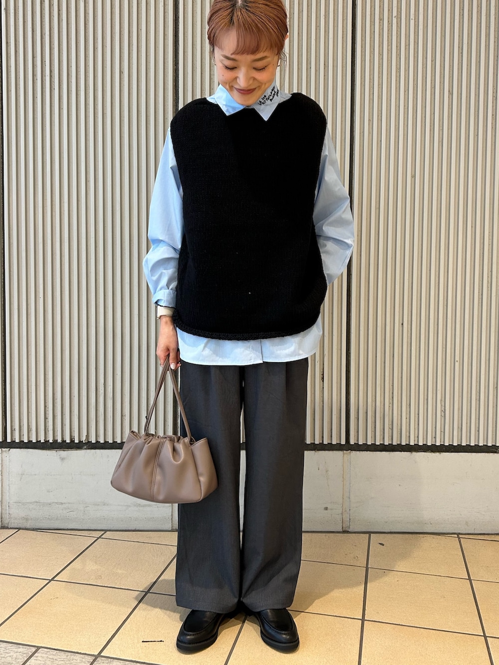 毎年大好評のペルーニットベストはブラックを選びました。ブルーのシャツとの組み合わせが好きです。