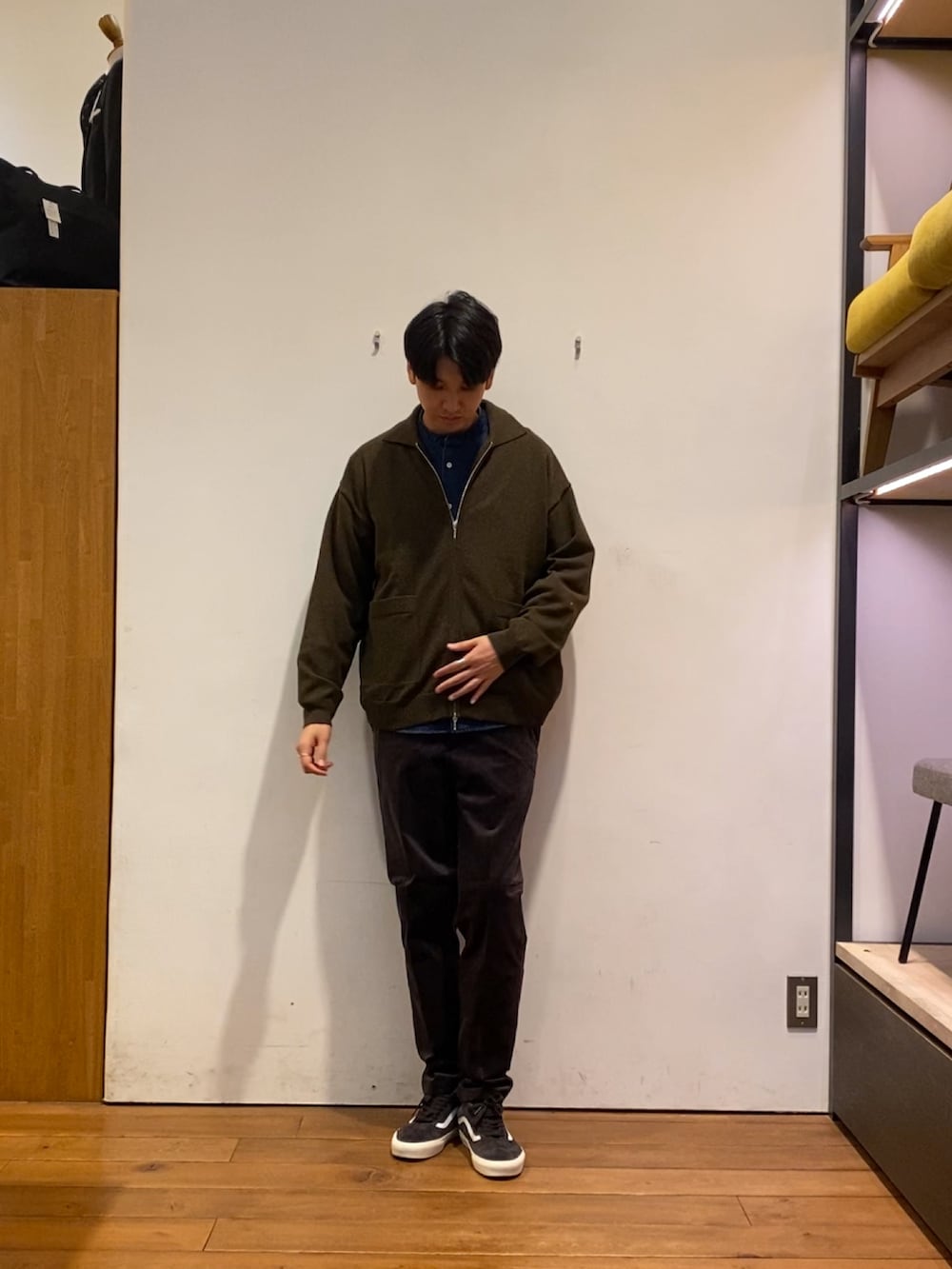 今回はバンドカラーのデニムシャツと合わせてカジュアルめにコーディネートしてみました!