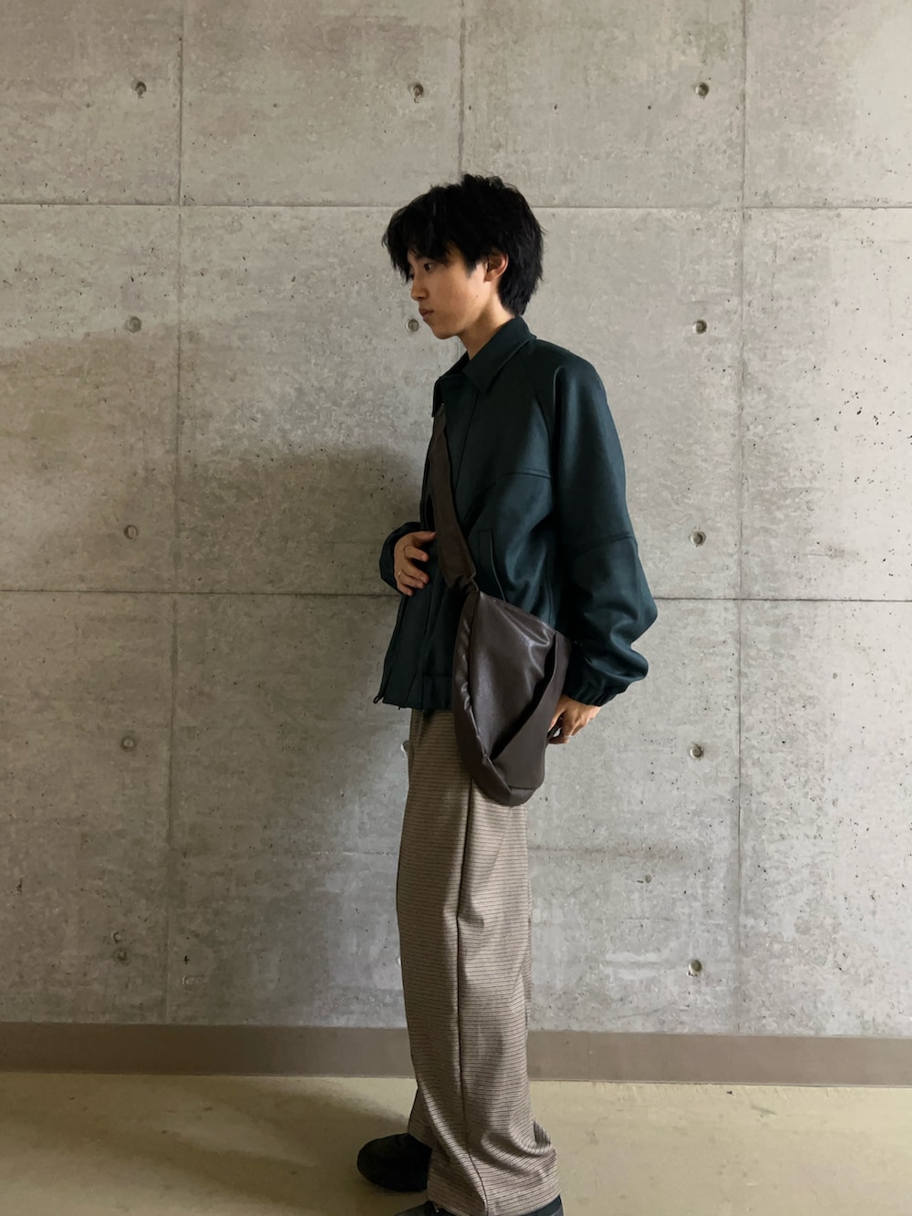 今回はトップスはシンプルなニットとスエード感のあるブルゾンを着用することで、洗練された雰囲気を出しつつ、パンツでブラウンのチェック柄を使うことで少しカジュアルな要素も入れてみました!ブラウンのショルダーバックを使うことでより秋っぽいコーデになったと思います!ぜひ試してみてください!