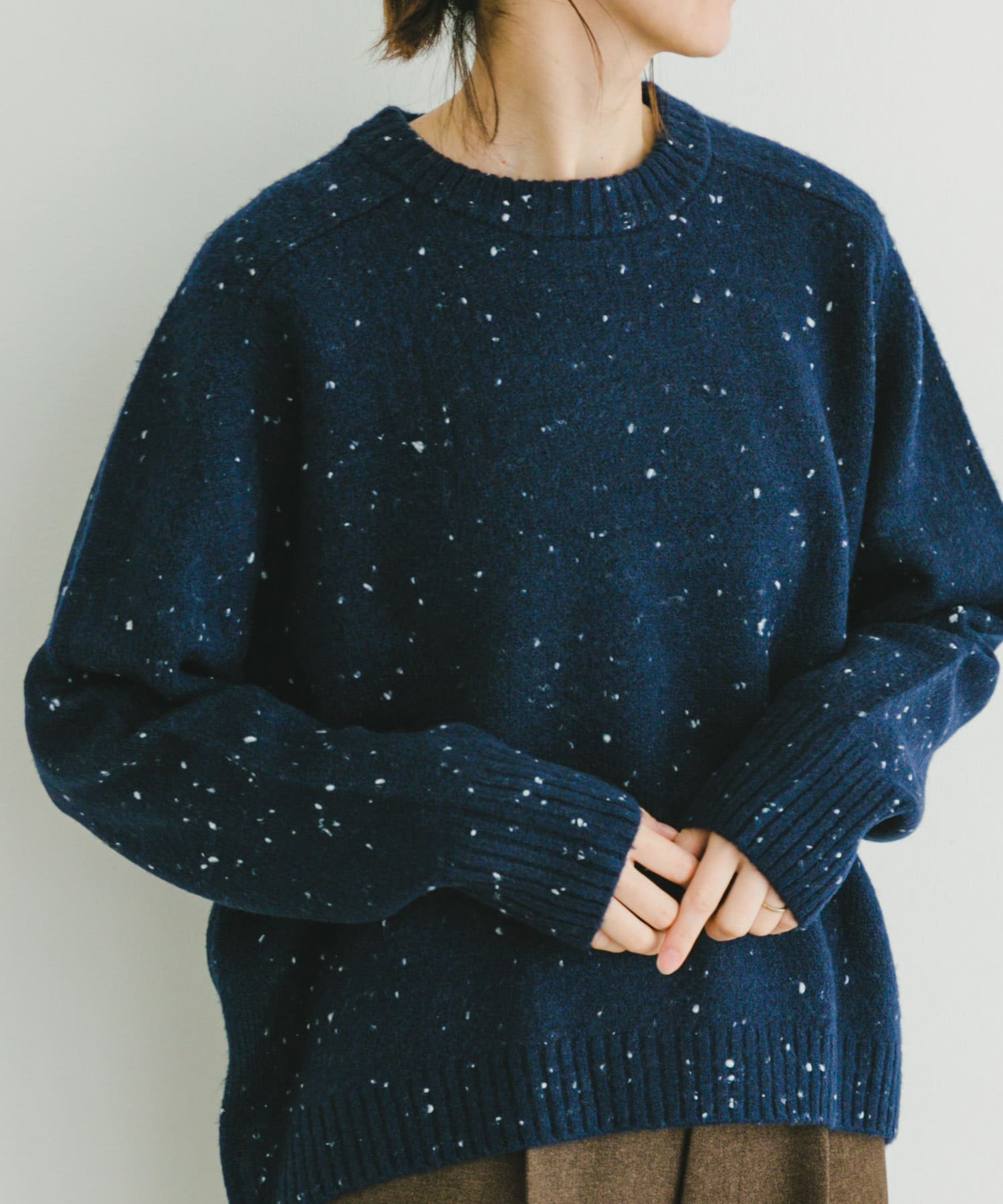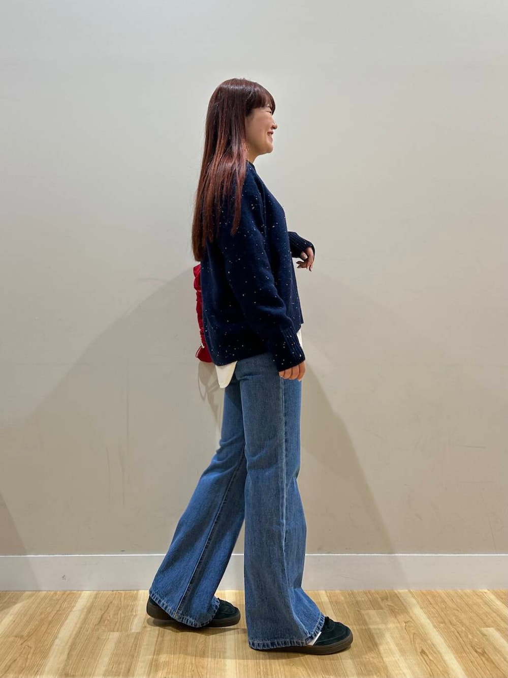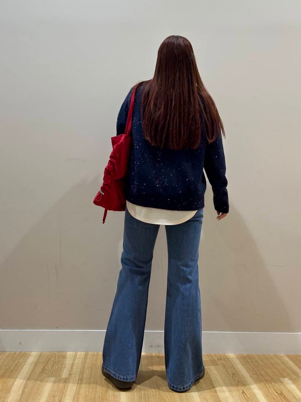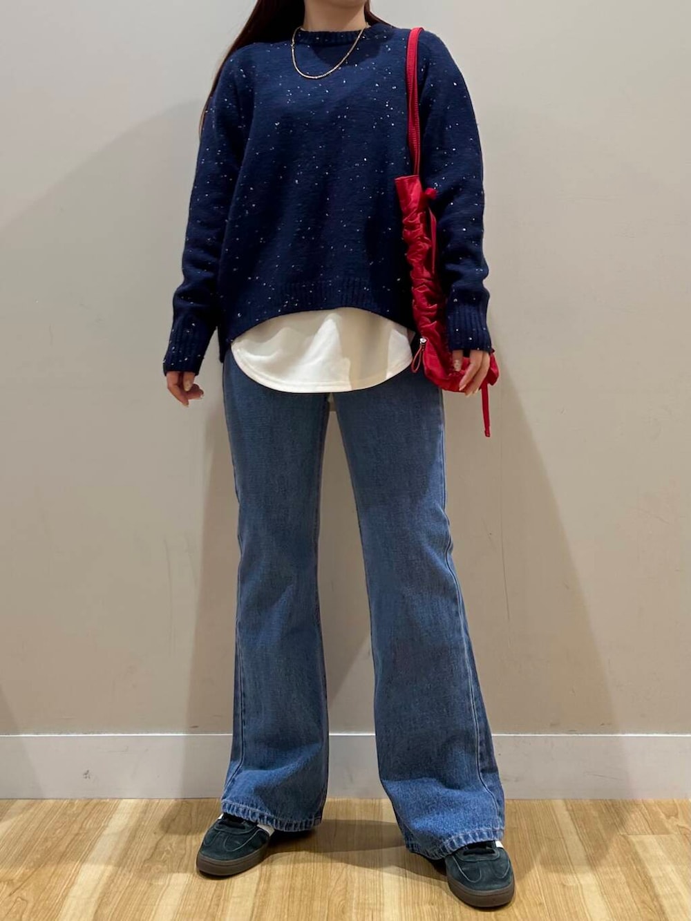 配色が素敵なニットは丈感長すぎないのでレイヤードしやすく、コーディネートの幅がぐっと広がるアイテムです^^