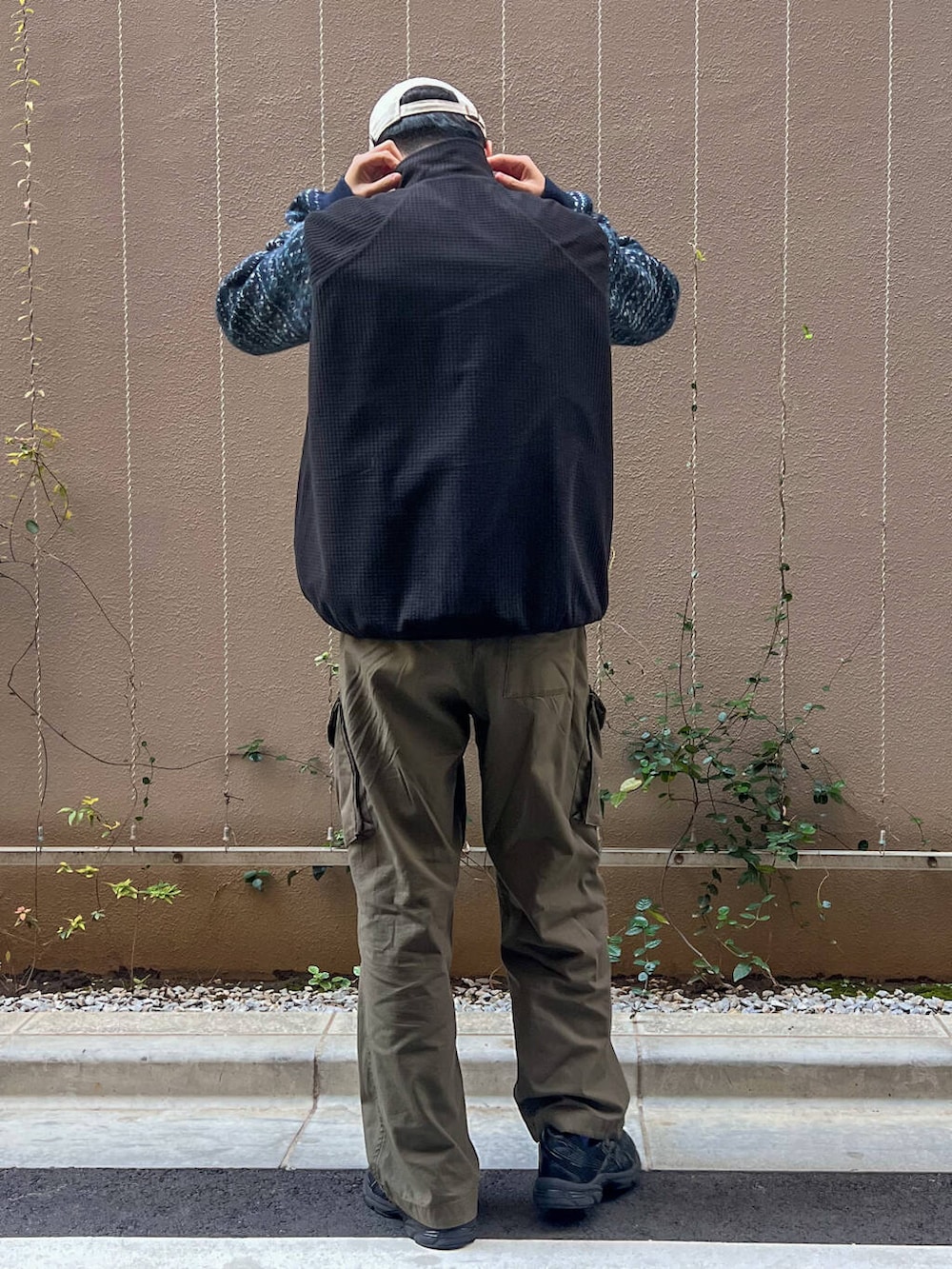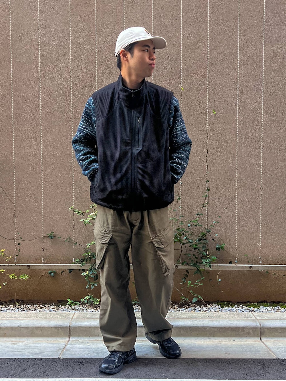 ナイロンとフリースのリバーシブルのベストと合わせて寒さ対策も◎