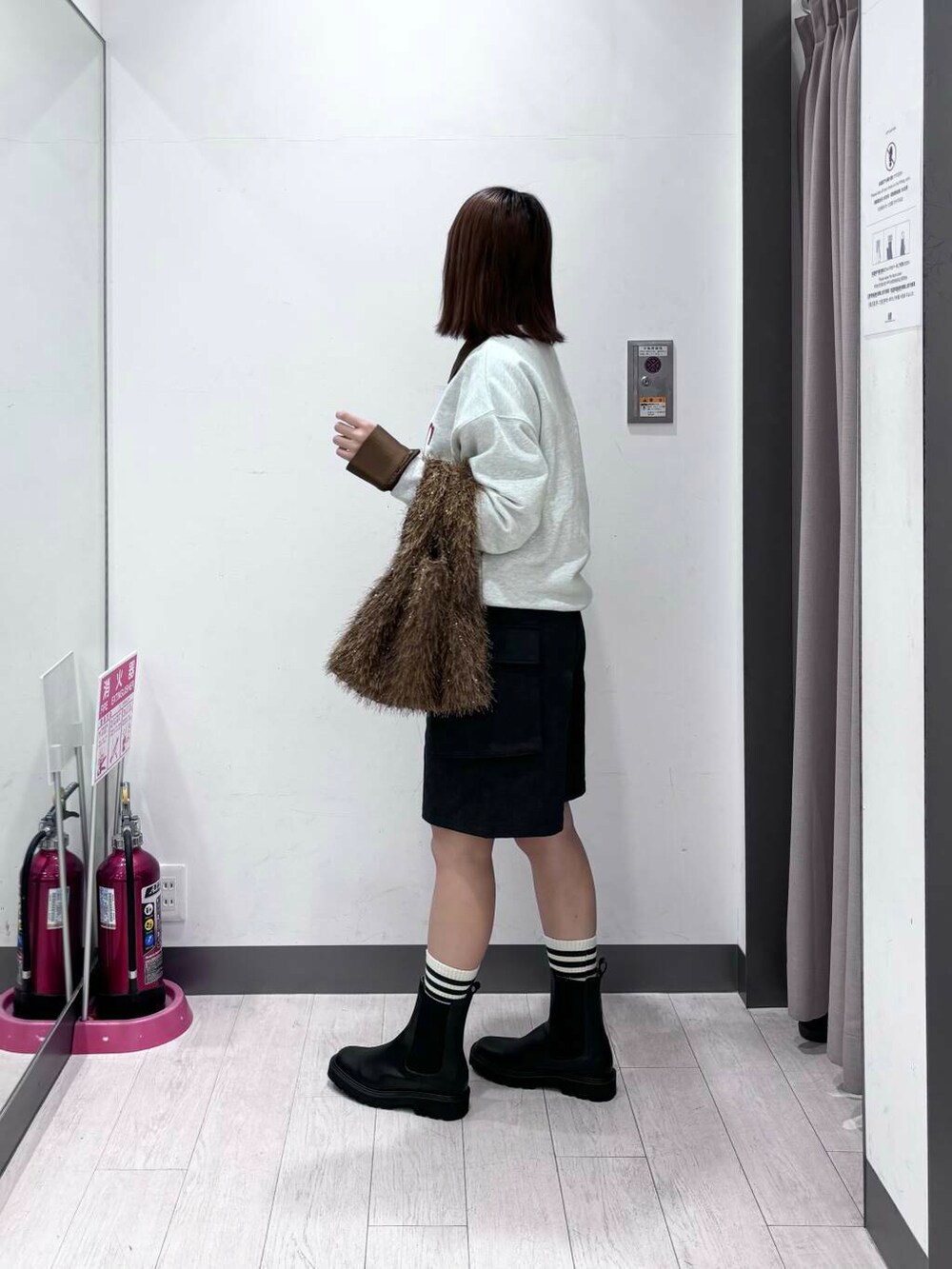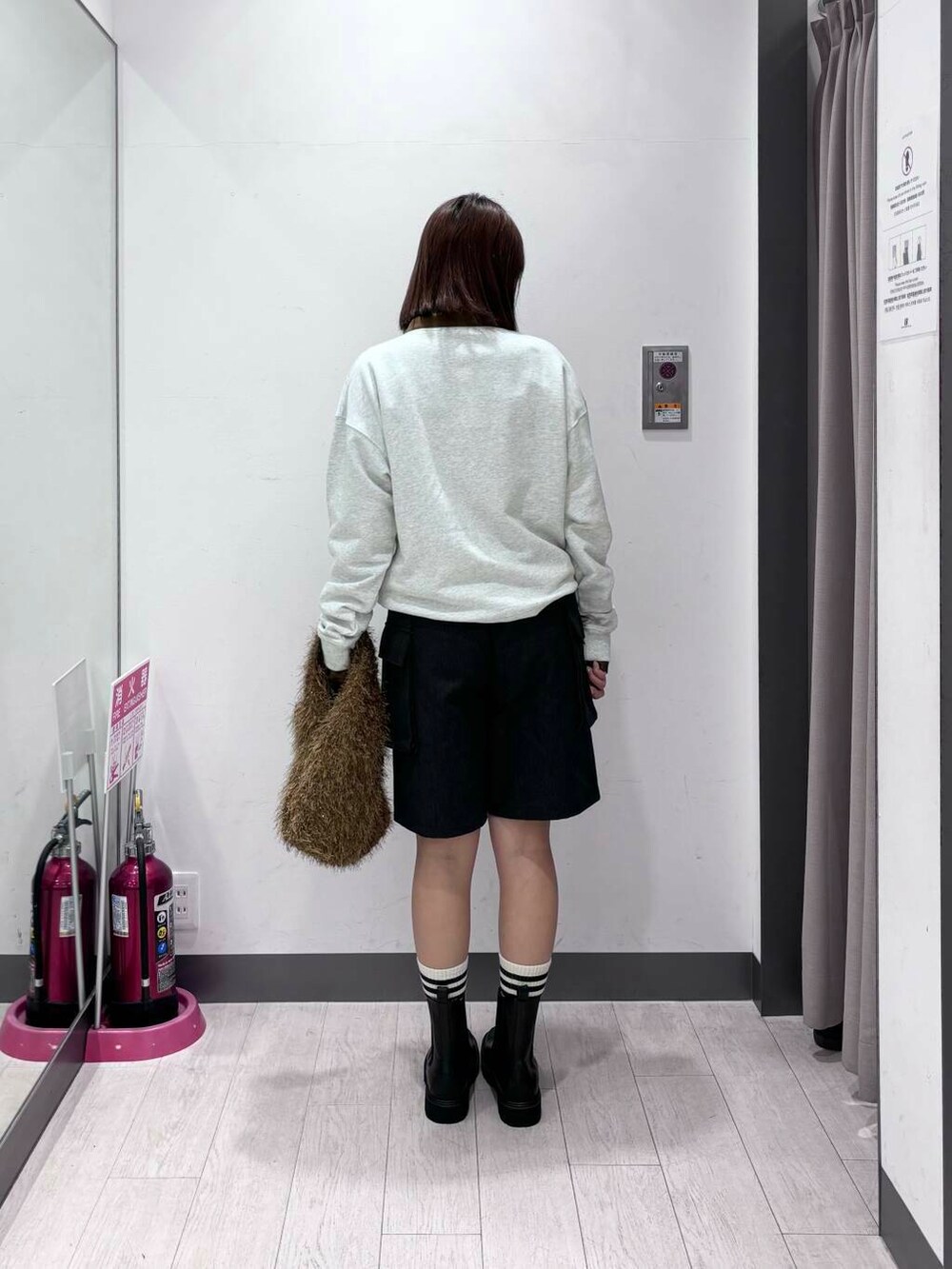 トレーナーとポケットが個性的なハーフパンツでメンズライクぽさはありますが、中にブラウンのシャツと小物を合わせることで女の子らしさを出してみした!