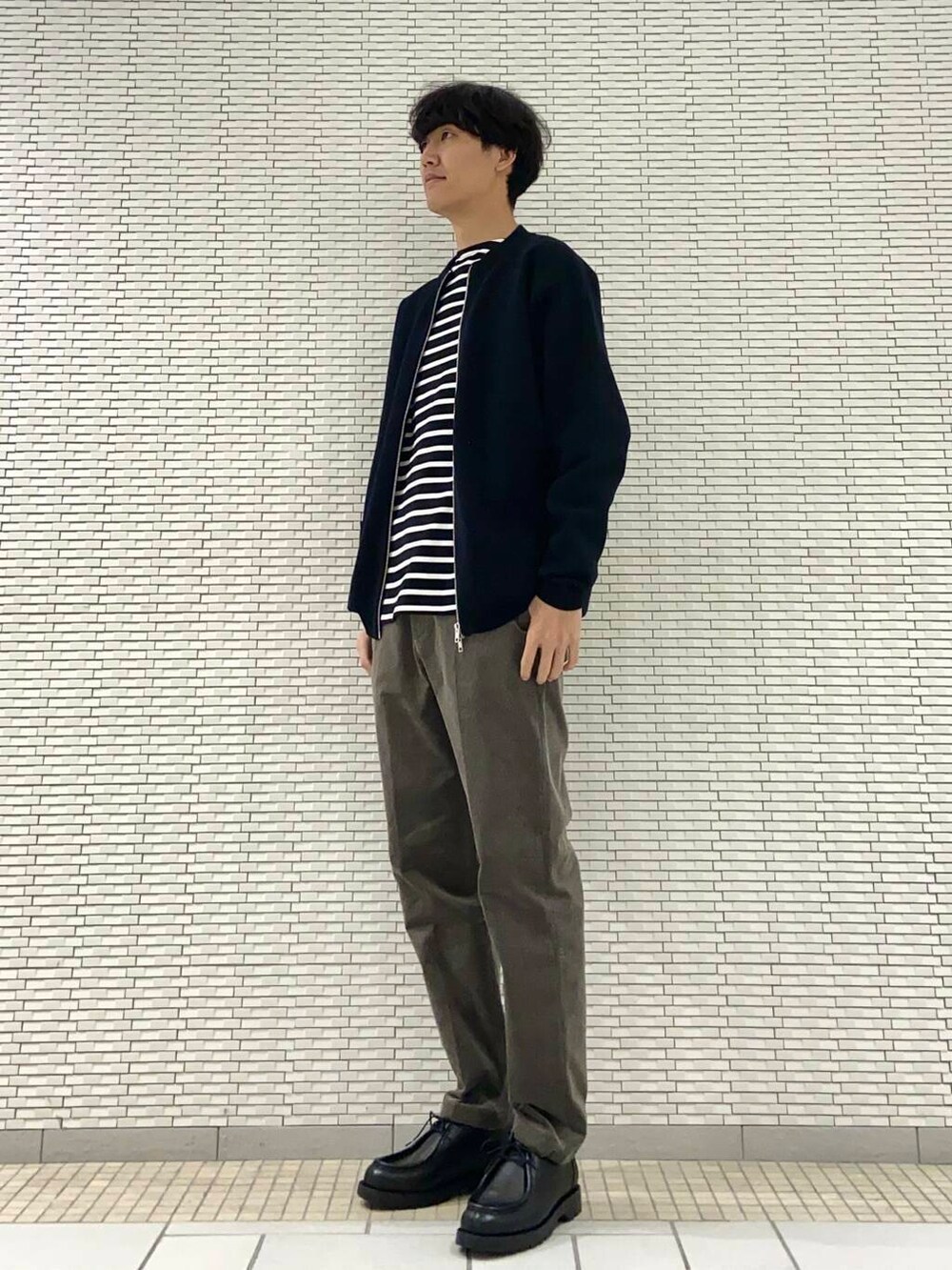 ニットのアウターを合わせた大人カジュアルコーディネートです。