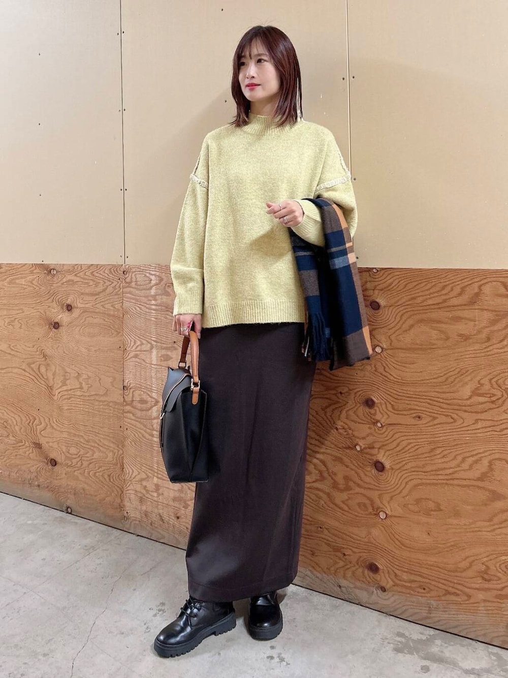 ✔︎ポンチ素材のスカートはストレッチが効いていて長さもしっかりあるので高身長さんにも