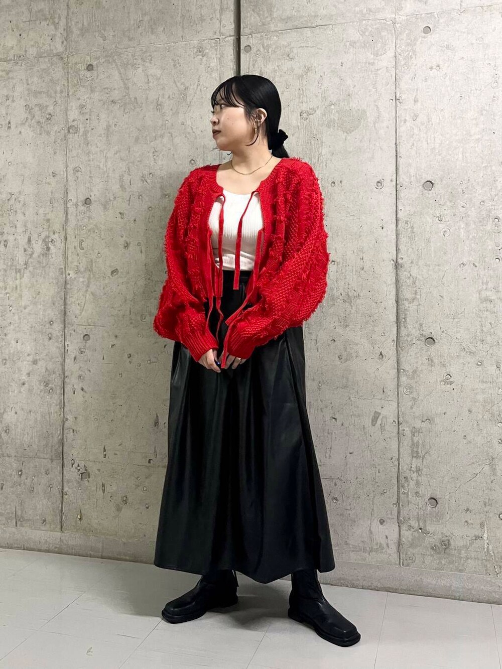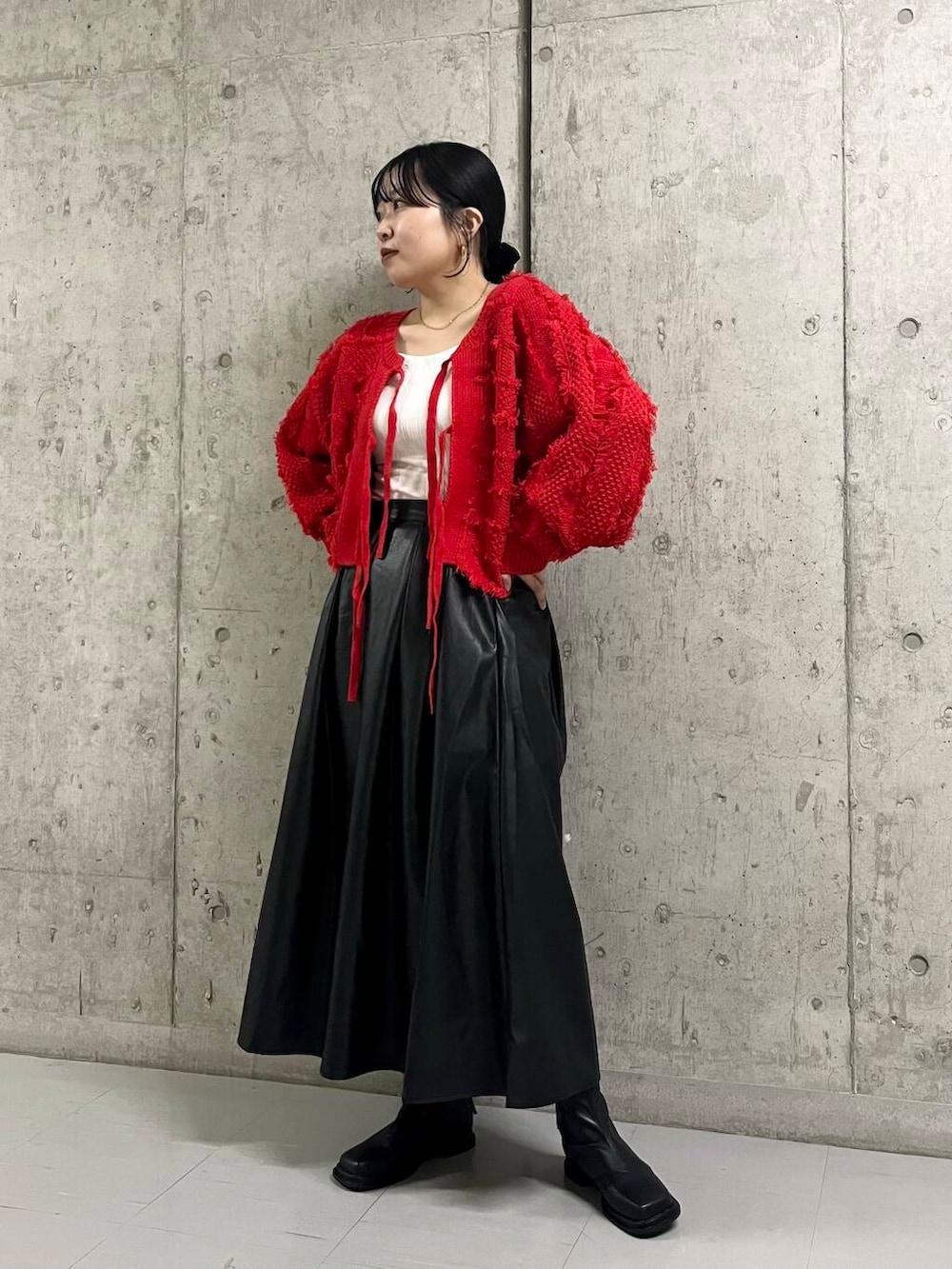 今回は赤のカーディガンとスカートで甘めスタイルです!