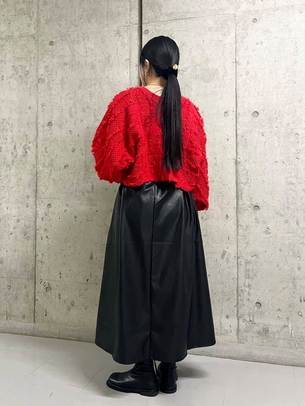 スカートはレザー素材なので、甘すぎることなく履けます。