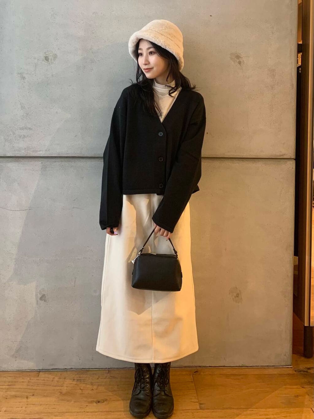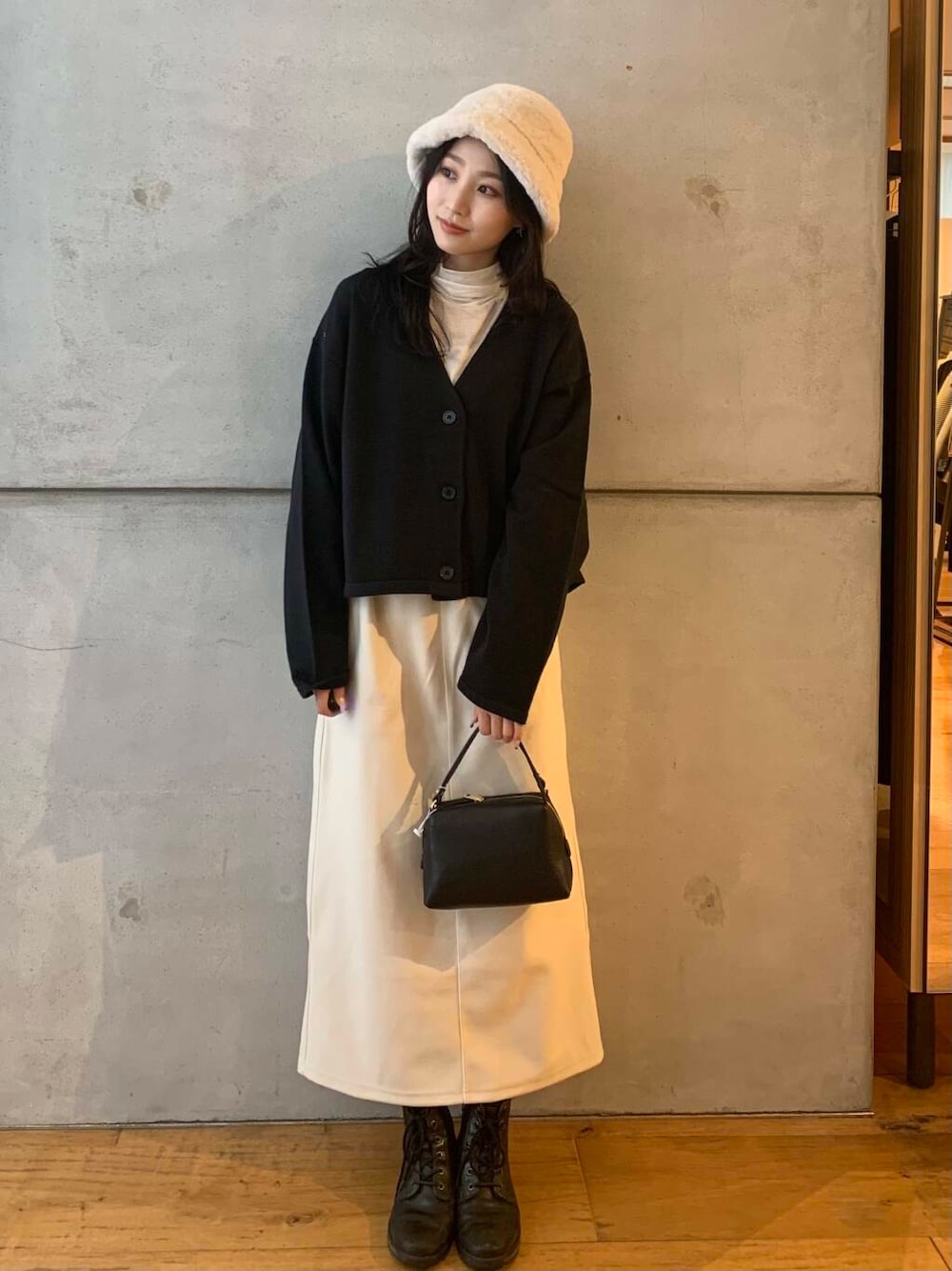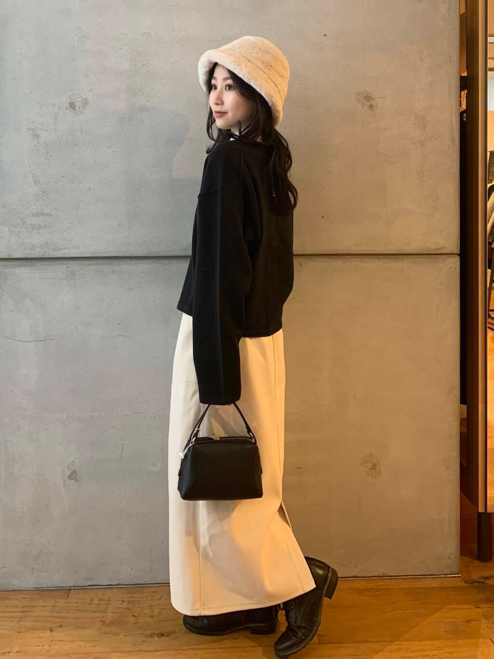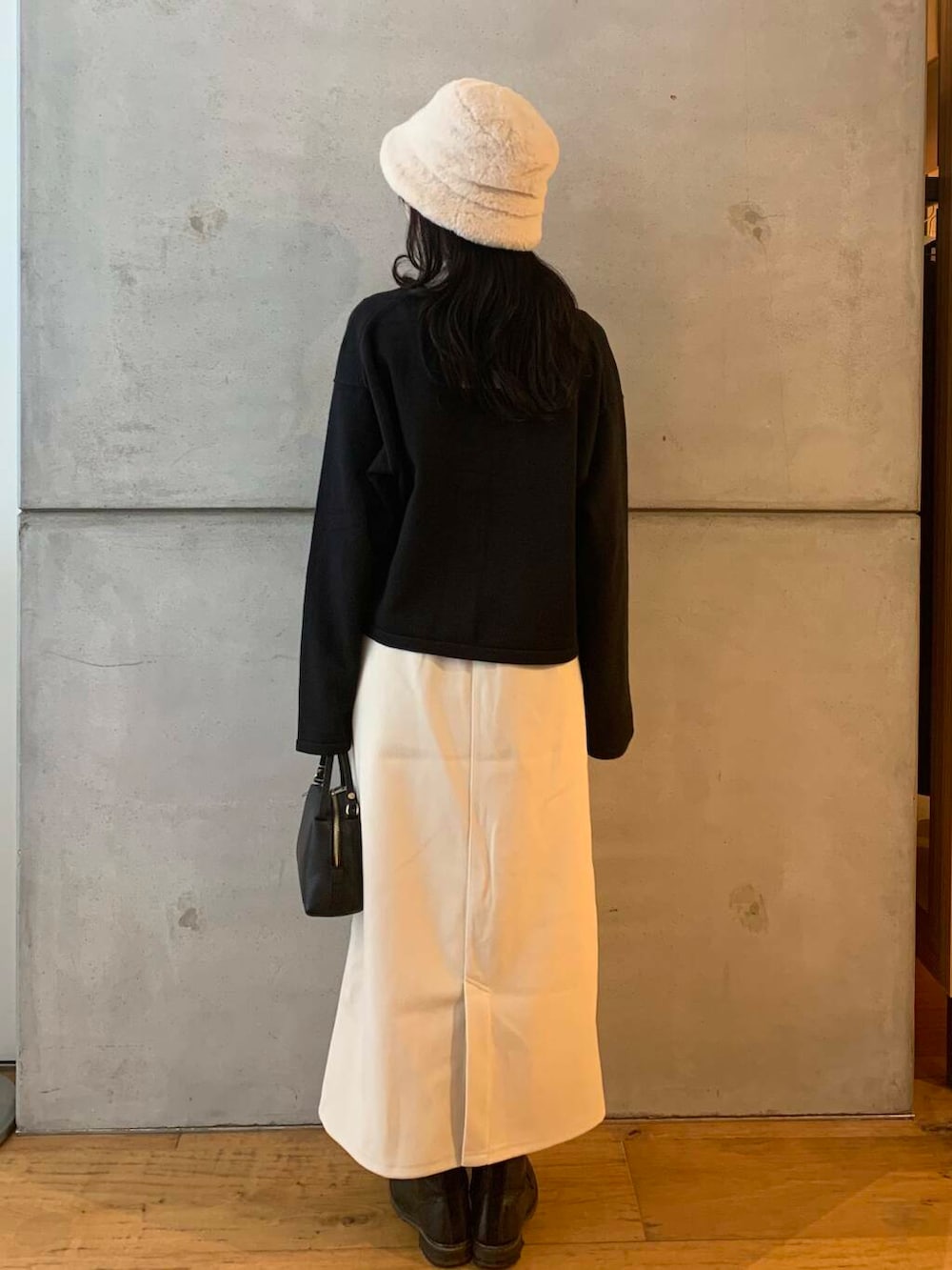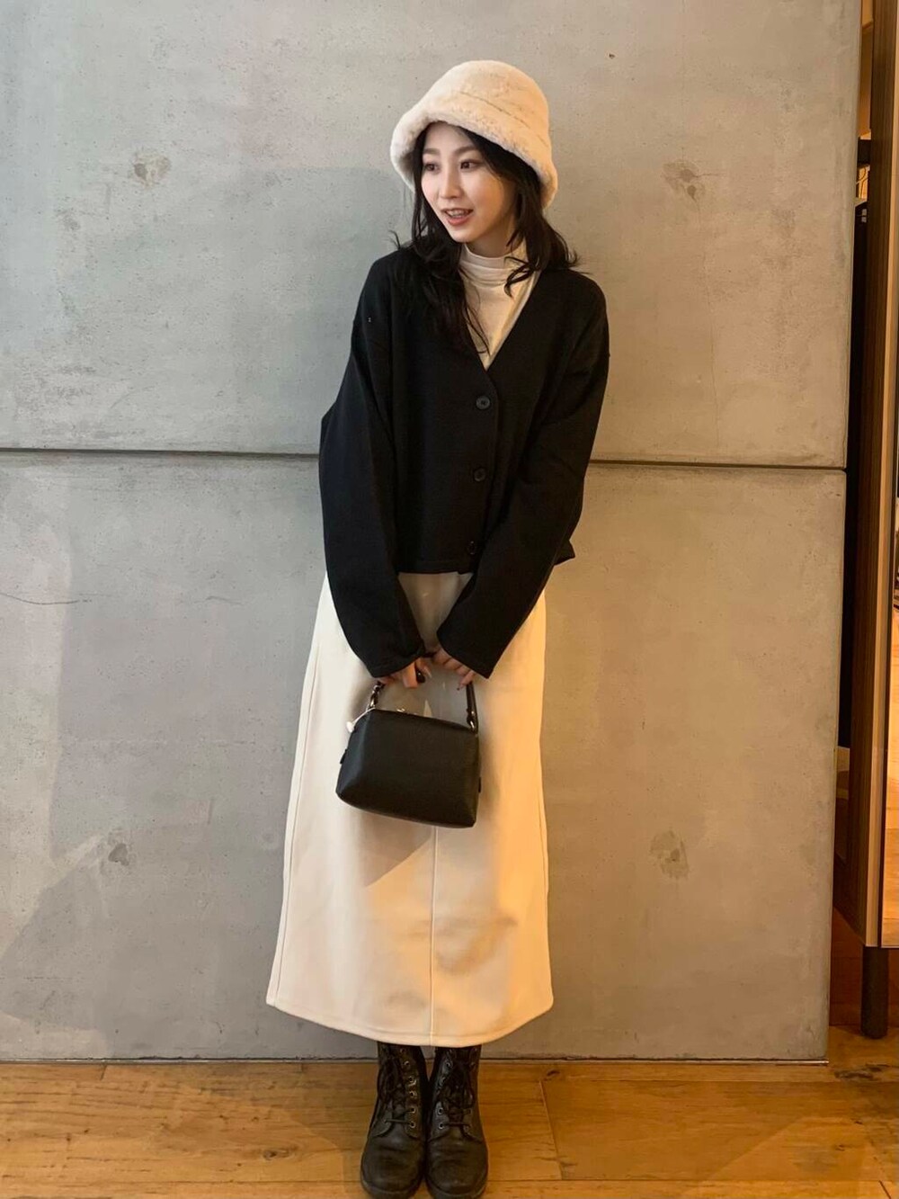 ボトムも暖かみが感じられる素材のスカートを合わせました!