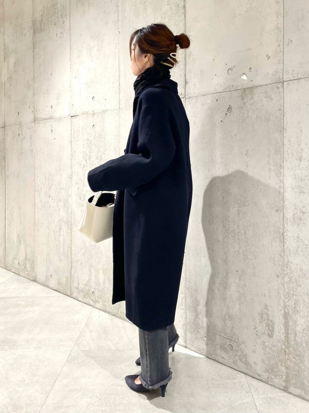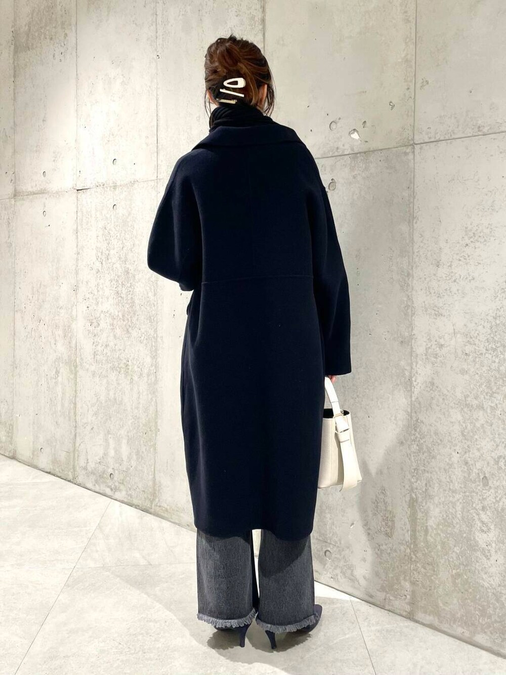 背筋がシャキッとするこちらのロングコートは、リバーなので裏地なしでも温かいです。