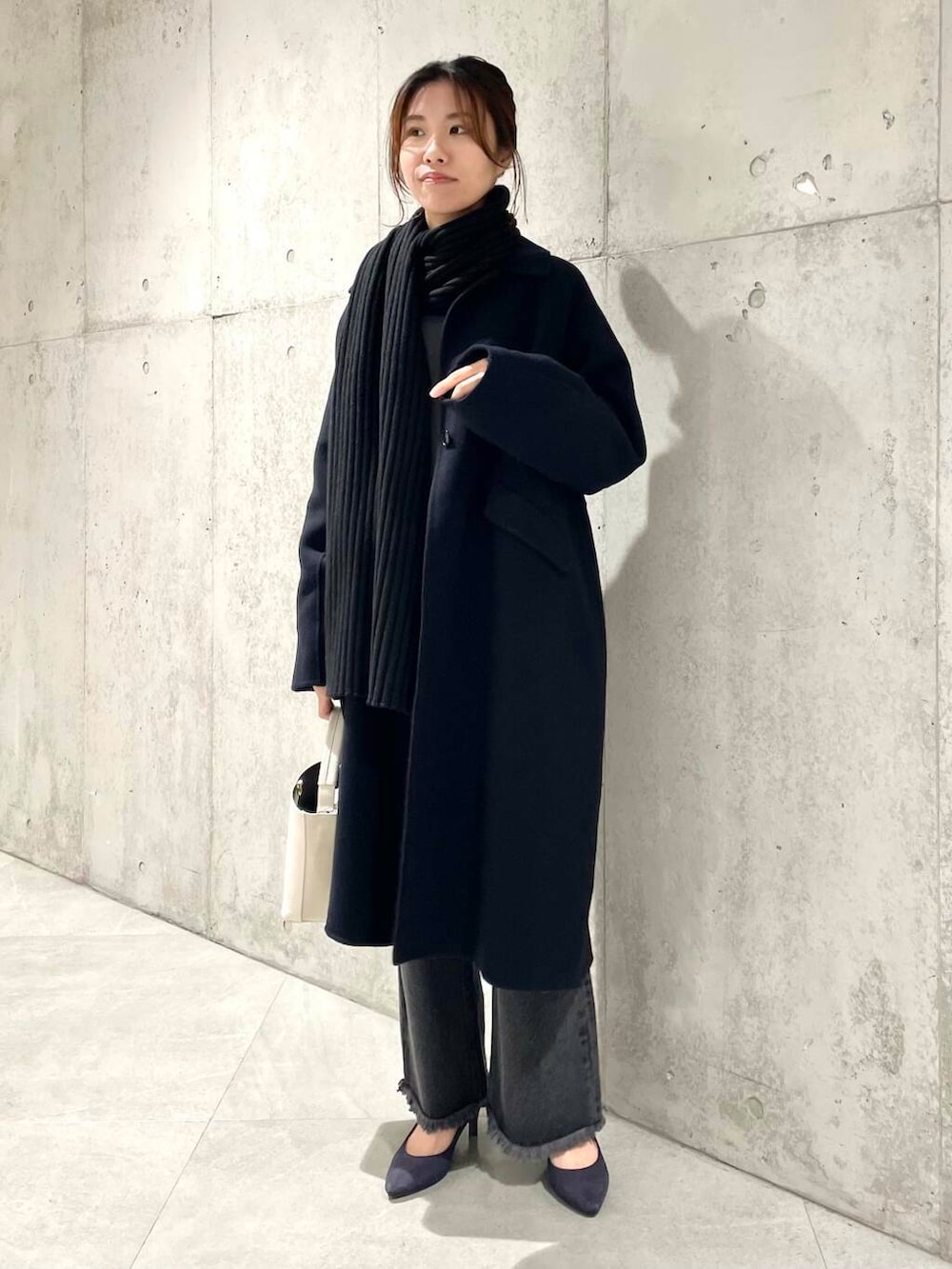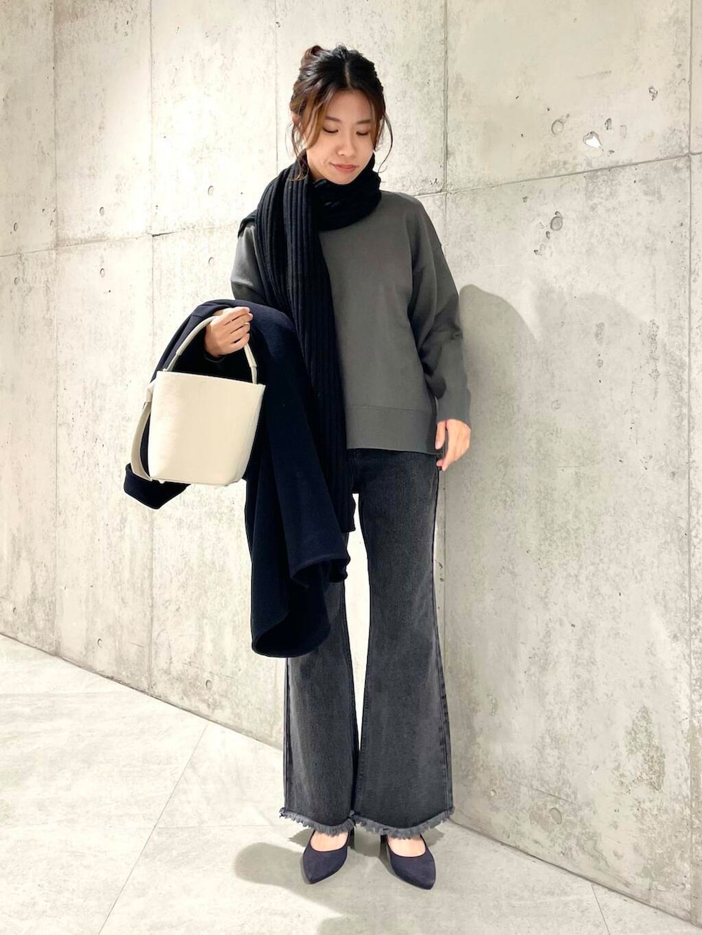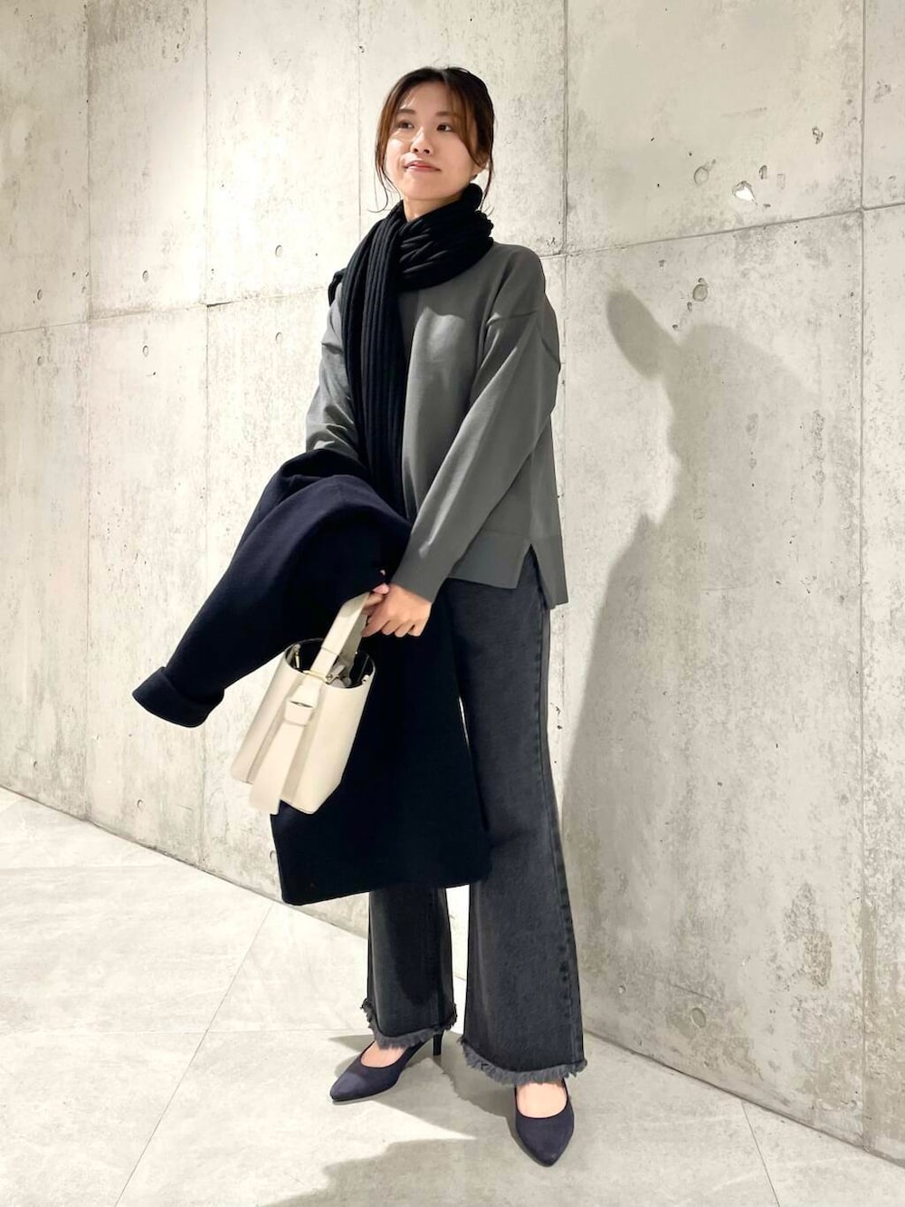 リブマフラーを主役にしたモノトーンな大人スタイルです。