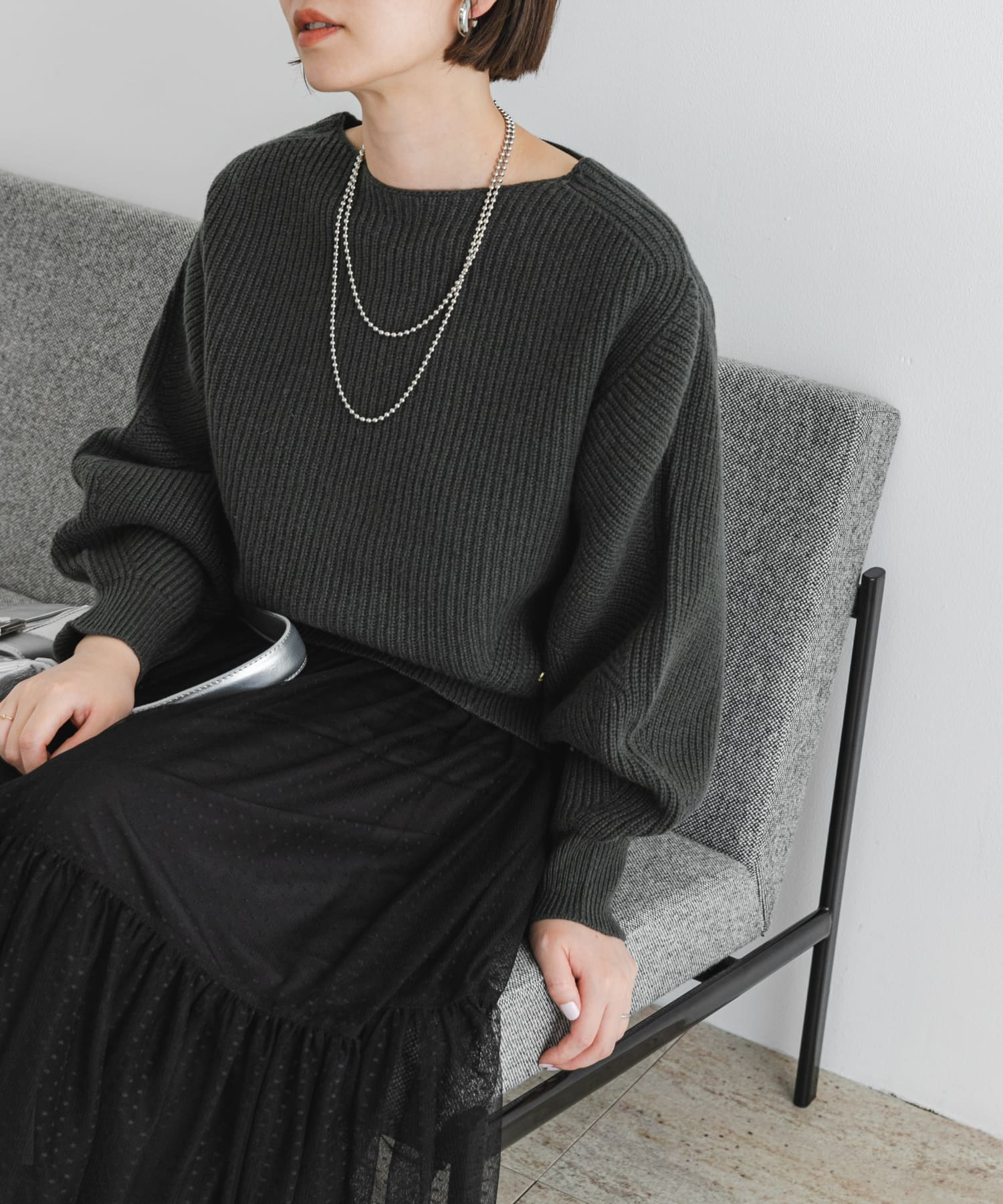 F by ROSSO ハミルトンボリュームスリーブ畦ニット