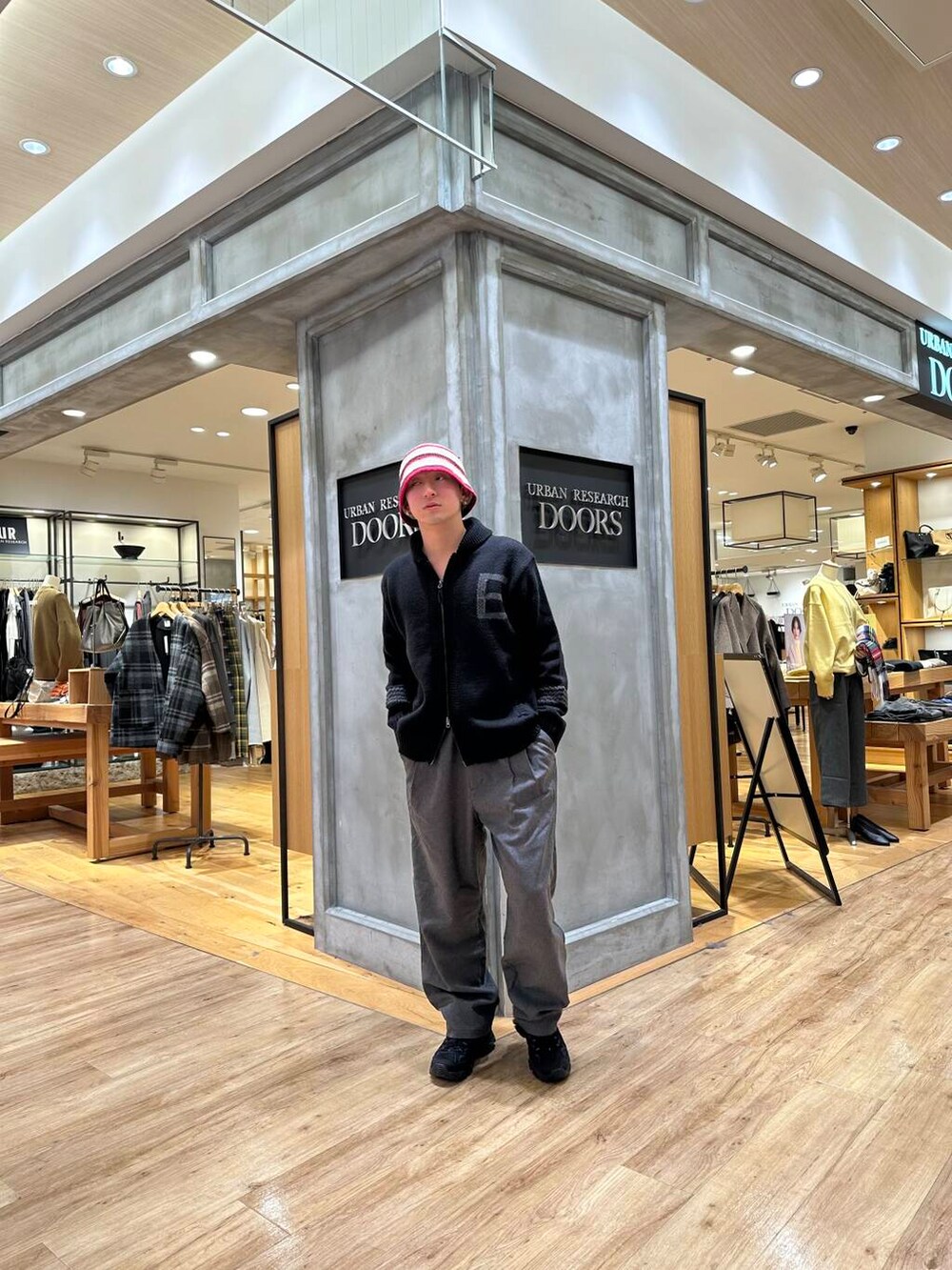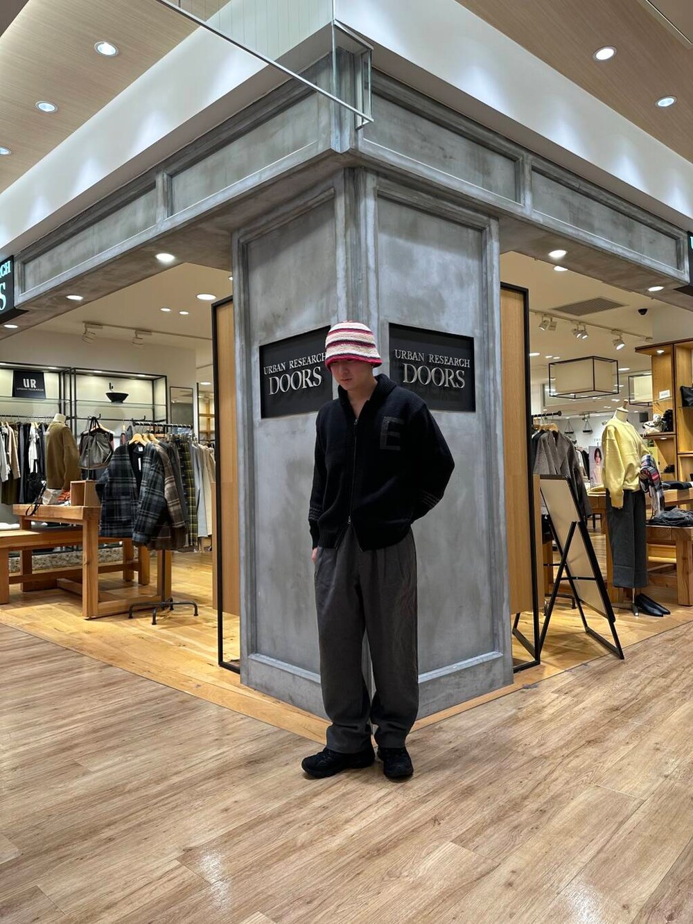 今回は暗めのアイテムで合わせてみました。上下EKALの商品です。頭に明るい色を入れると映えますね。